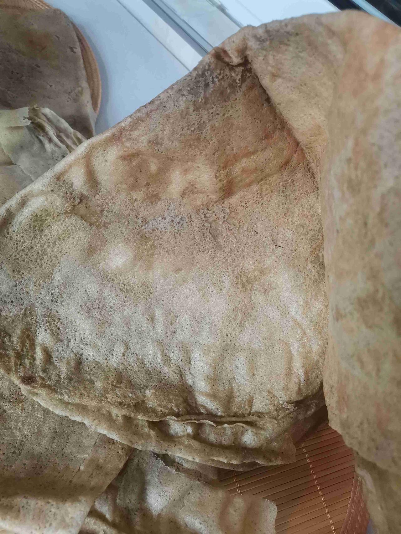 还是家乡的味道啊! 已经有很多年没有吃过大煎饼了,三姐今年做的大煎饼,给我们分了几对,尽管不多,但是已经很知足了,现在这个都变成了稀罕物。 绿豆小米磨成面,在弄成糊糊,然后摊出来,晾干以后,想吃的时候放进肉汤里,泡软别提有多好吃了。带定位晒今日生活 我的今日状态:😁轻松愉快 我这里的天气:☀️晴天