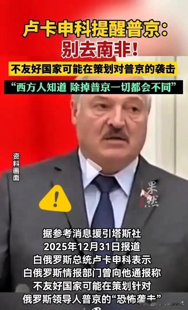 普京不去南非真相曝光,安全威胁压倒法律风险,背后竟是生死抉择。 原来2023年金砖峰会时,普京根本不是因为国际刑事法院的逮捕令才不去南非的。 白俄罗斯总统卢卡申科最近说,他们的情报系统截到了关键信息,有不友好国家在策划对普京的袭击。 那会儿普京行李都快收拾好了,最后被卢卡申科劝住了。 这事现在越看越吓人。 当时普京要是真去了,万一出事,后果不敢想。 卢卡申科说,战争时期这种出行太危险,特别是针对他的威胁一直都在。克里姆林宫后来也承认,不去是因为安全建议,和ICC没啥关系。 官邸还被无人机试攻击过。 这些事连起来看,不是巧合。 有些人就是想让他别活着回来。他不去,真的是对了。 现在再提这事儿,说明背后水更深。 普通人听完了都背发凉。 南非现状
