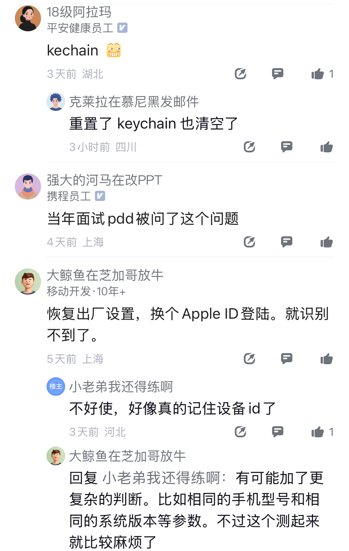 有网友问,拼多多是怎么识别设备唯一性的?iPhone都还原重置了,怎么还能知道该手机之前下过单买过百亿补贴设备。看了一眼评论区,有不少从专业角度分析的,但好像没人能说到点上。不得不说,拼多多开发有点东西的。