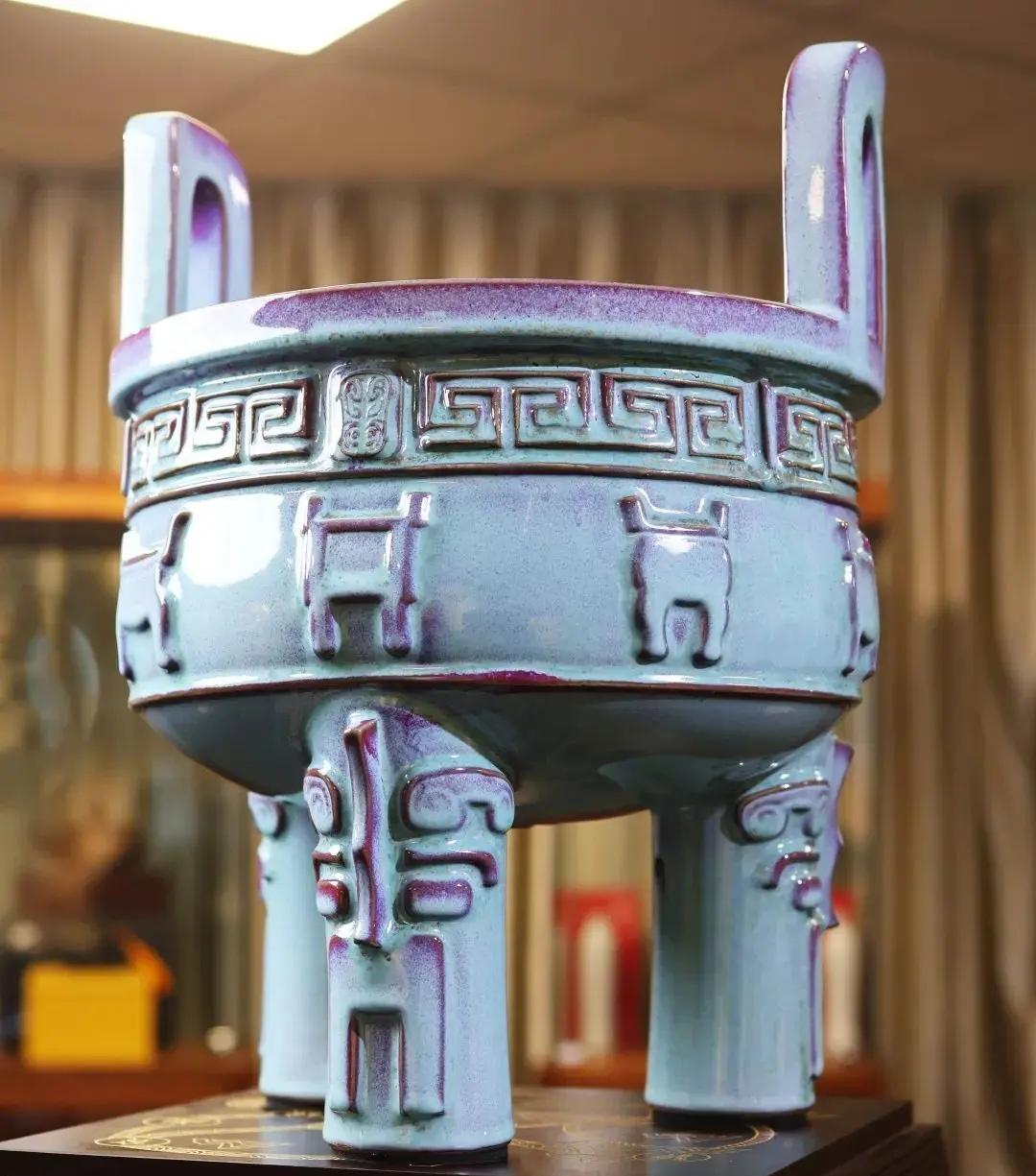 从釉色、工艺、造型上判断,这个瓷瓶绝对不是产自我的家乡、河南禹州神垕的钧瓷。 钧瓷是宋代五大名窑之一,被宋徽宗钦点为御用珍品,造型古朴,典雅大方,尤其以“入窑一色,出窑万彩”的自然窑变著称。 而昨天邱代表送给老马的这款瓷器,属于彩瓷系列,色泽亮而妖,与钧瓷的古朴厚重大相径庭。 钧瓷,亦经常被当作国礼赠送外国政要。 这个瓶子,造型有点像“瓮”,请君入瓮,不太吉利! 假如,送给老马一尊钧瓷“鼎”,或许,他就能逃过此劫——鼎定天下!
