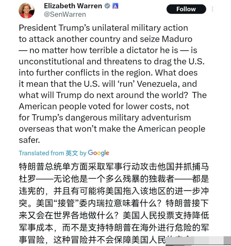 特朗普有麻烦了!佩洛西,美国联邦参议员伊丽莎白·沃伦等多人把矛头对准了特朗普。特朗普的死对头佩洛西表示,委内瑞拉由“非法政权”统治,但本届政府并未证明美国国家安全面临迫切威胁。特朗普总统毫不掩饰其实质上废除国会的企图,如今他仍在公然无视美国宪法第一条赋予国会的战争权——这一权力是美国宪法制衡体系的核心所在,此类行径愈演愈烈。 最直接的佐证便是其在委内瑞拉问题上的单边军事动作。特朗普政府多次以打击毒品走私为由,在委内瑞拉附近海域大搞军事威慑,不仅出动F-18战机、EA-18G电子战飞机和MQ-4C无人侦察机飞越委内瑞拉湾,距离其第二大城市马拉开波不到161公里,甚至有媒体援引雷达数据证实美军战机曾进入委领空停留至少40分钟。 更值得注意的是,特朗普政府还曾策划抓捕委内瑞拉总统马杜罗的行动,而这一系列可能引发地区冲突的军事动作,全程未获得国会的合法授权。即便事后行政部门向国会“八人团”做机密汇报,也未能给出清晰的战略规划。 参议院民主党领袖舒默明确表示对汇报内容极度不满,纽约州众议员安迪·金更是直接指责国务卿和国防部长公然对国会撒谎,直指特朗普拒绝遵守宪法要求的武装冲突批准程序,本质上就是因为知道美国民众绝大多数反对卷入另一场战争,才故意绕开国会这一民意代表机构。 更具讽刺意味的是,特朗普政府将毒品走私作为对委行动的核心依据,可其近期赦免洪都拉斯前总统胡安·奥兰多·埃尔南德斯的行为,却彻底戳破了这份所谓“禁毒”理由的虚伪性。 要知道,埃尔南德斯绝非普通涉毒人员,美国司法部明确指控其在2004年至2022年担任洪都拉斯议长和总统期间,滥用职权协助向美国出口至少400吨可卡因,还借此收取数百万美元贿赂。 这样的量级足以对美国社会造成严重危害,2024年6月纽约南区联邦法院也因此以共谋贩毒和非法持有武器罪名,判处其45年监禁和800万美元罚金。 可就在2025年11月洪都拉斯关键投票时期,特朗普却突然宣布赦免埃尔南德斯,给出的理由竟是“据许多我非常尊敬的人所说,他受到的待遇非常严苛且不公正”。 这种荒唐的解释背后,实则是为了给埃尔南德斯的亲密盟友、洪都拉斯国民党候选人阿斯富拉站台,甚至还公开威胁若阿斯富拉不能当选,美国就将停止对洪都拉斯的援助。 一边是打着禁毒旗号在拉美地区大动干戈,甚至在加勒比海和东太平洋击沉超过20艘所谓“贩毒船”造成80多人死亡,国防部长还曾下令对运毒船实施二次攻击“不留一个活口”。 另一边却为了自身政治私利,随意赦免罪证确凿的“大毒枭”前总统,这种双重标准的操作,恰恰印证了其以毒品走私为行动依据的说法根本站不住脚,不过是为了推行霸权主义、干涉他国内政找的借口。 从宪法制衡的角度来看,特朗普的这类行径并非个例,而是对国会权力的持续侵蚀。美国宪法第一条赋予国会的战争权,本就是为了制约总统的军事指挥权,1973年《战争权力决议案》更明确要求总统在派遣军队前需与国会商议,仅在宣战、国会特殊授权或美国领土及军队遭袭击的紧急状态下才能发动军事袭击。 但特朗普政府却试图通过将贩毒集团定性为恐怖组织的方式,绕过国会授权发动军事攻击,这种主张在法律上根本不成立,行政部门将外国团体列为恐怖组织的权限仅包括冻结资产、禁止商业往来等,并不涵盖军事打击权。 即便如此,特朗普政府仍在2025年10月向国会提交备忘录,强行将对所谓贩毒集团的行动定义为“非国际武装冲突”,将死者称为“非法战斗人员”,这种自欺欺人的辩解,恰恰暴露了其无视宪法制衡、企图架空国会的真实意图。 而佩洛西等人事先指出的“本届政府并未证明美国国家安全面临迫切威胁”也得到了事实印证,特朗普政府在拉美地区的一系列军事动作,本质上是为了争夺地区影响力、干涉他国内政。 而非维护美国的国家安全,其一边喊着禁毒口号搞军事扩张,一边为涉毒政客站台的虚伪操作,不仅让美国的宪法制衡体系形同虚设,也让其所谓的“人权”“法治”外衣碎了一地。