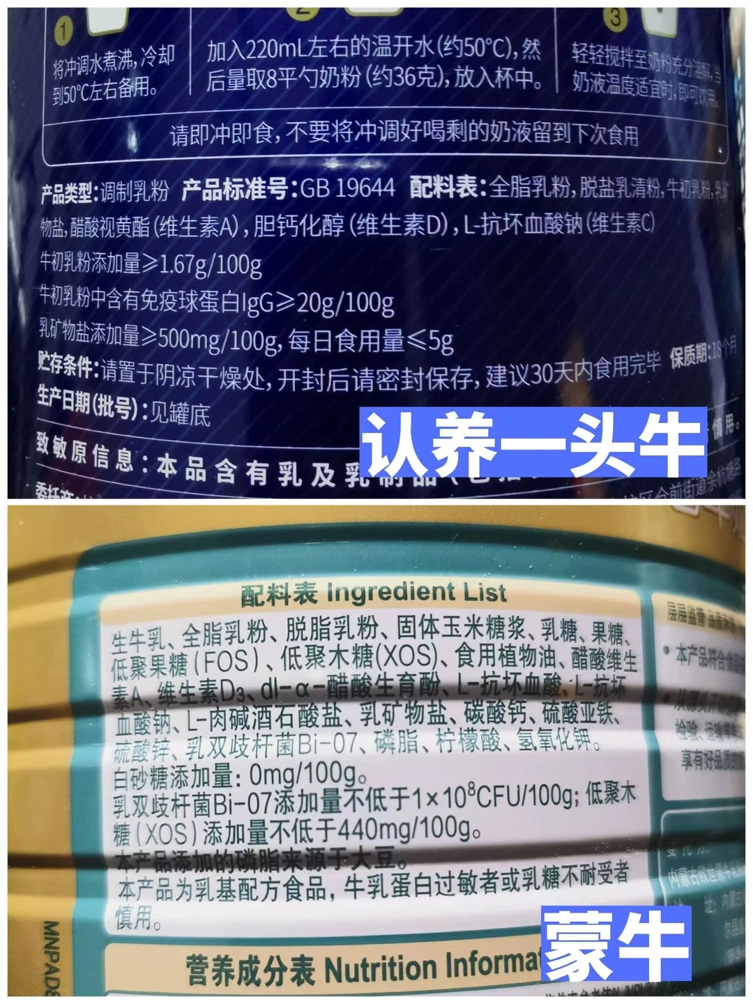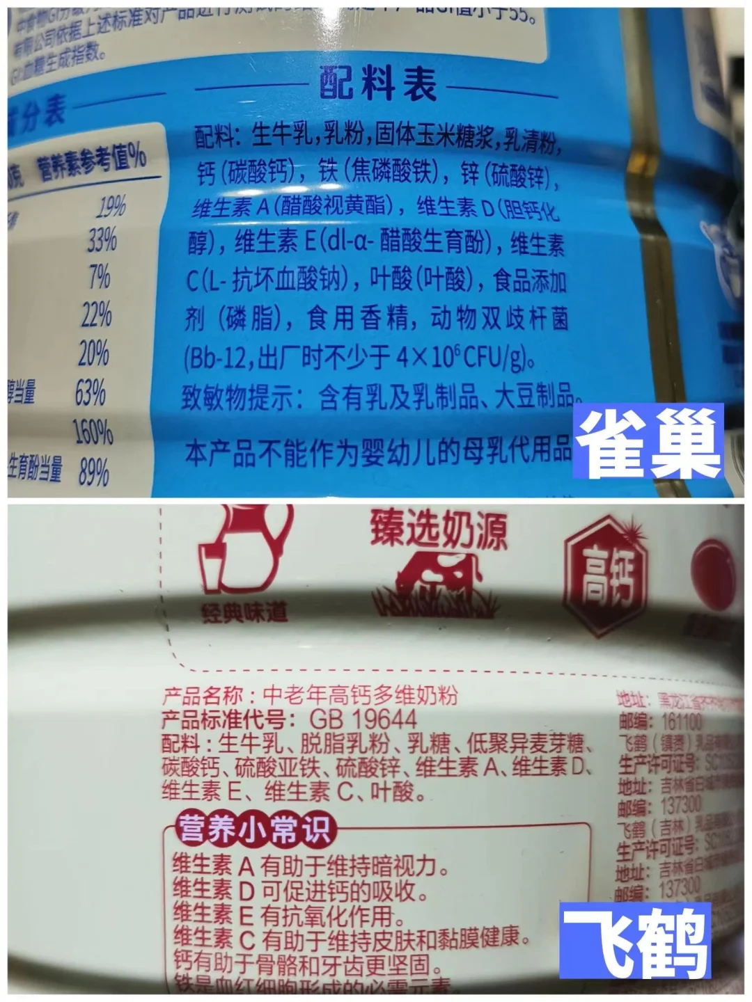 来一个中老年奶粉配料表大揭秘