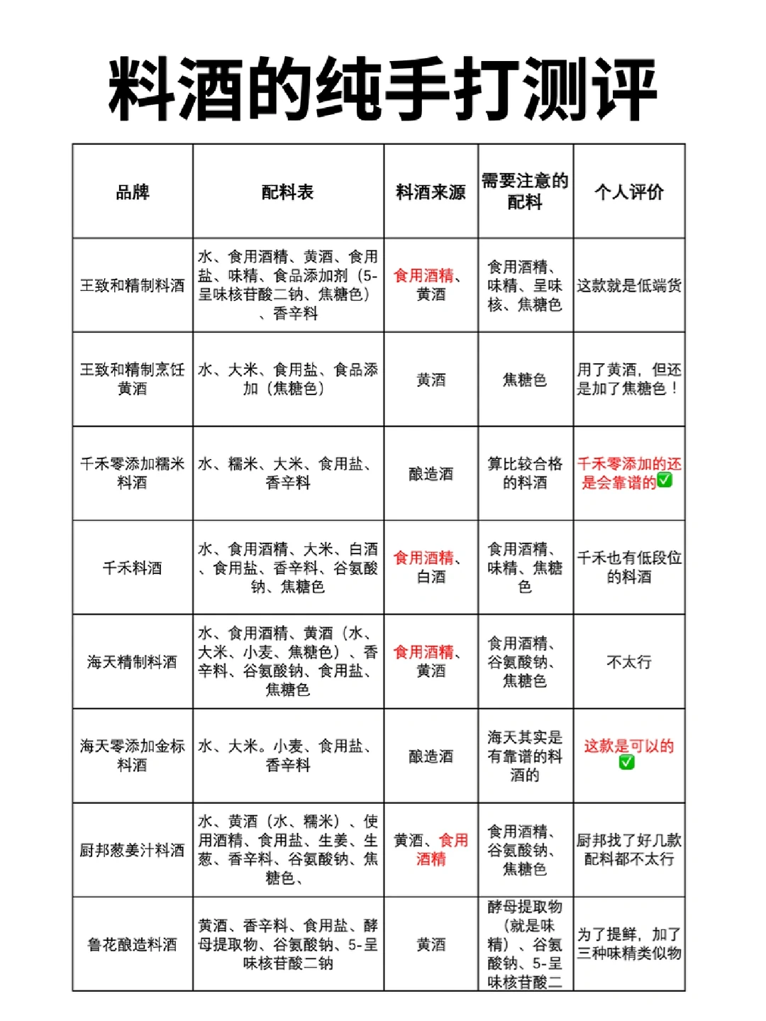王致和精制料酒、千禾料酒、海天精制料酒、厨邦葱姜汁料酒、六必居料酒、恒顺料酒、巨龙大厨料酒、鼎丰料酒王、东古精制料酒…这只是我查到的,市场上还有很多❗️
