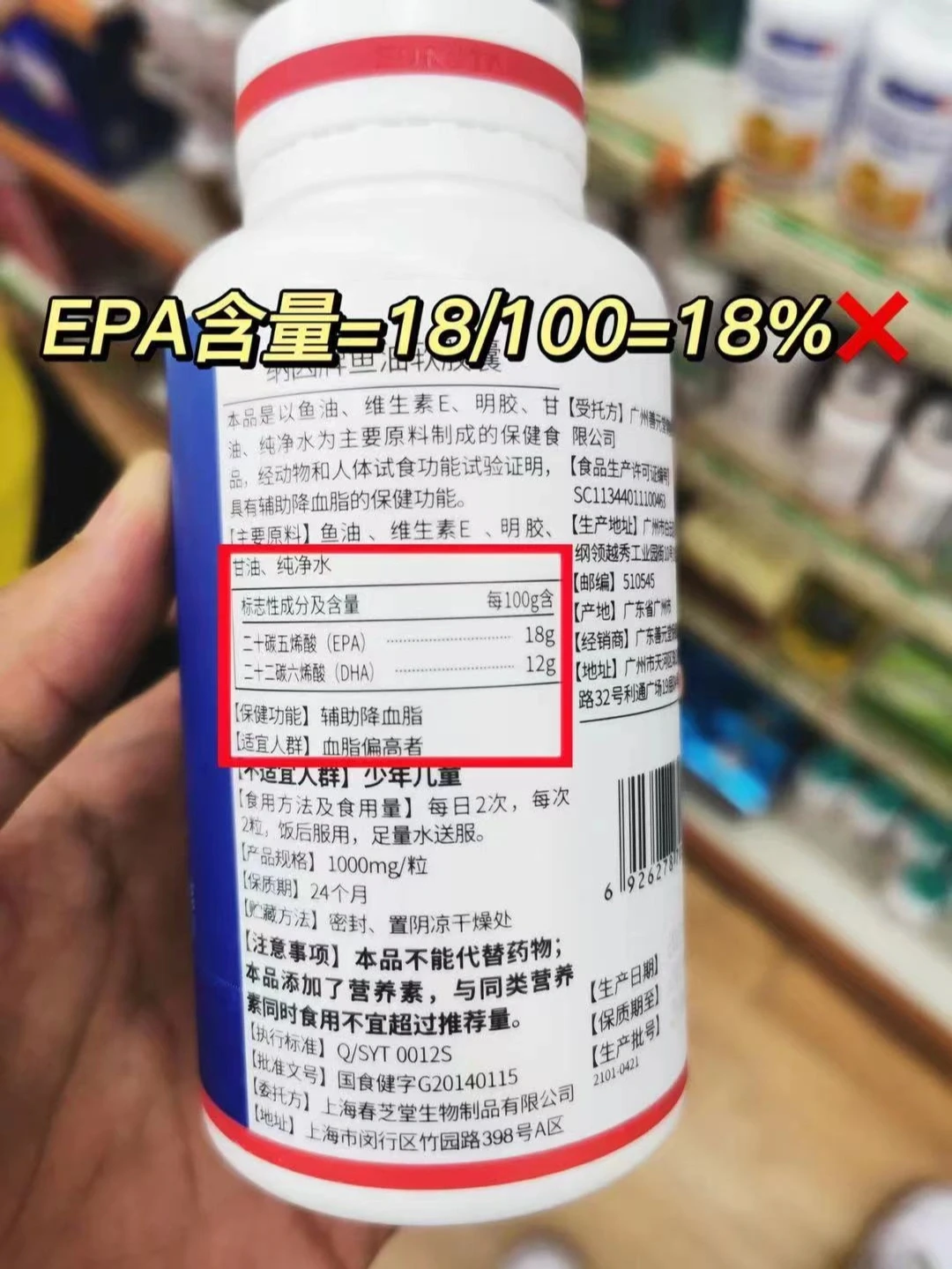 具体计算公式:EPA纯度=EPA含量/一粒鱼油的净总重量