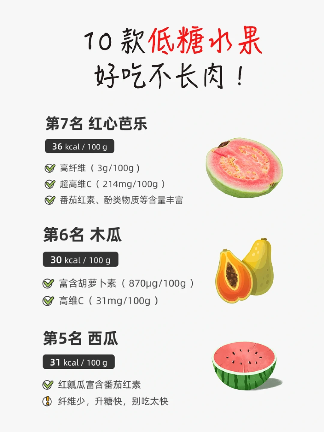 有的水果的含糖量真的不低,今天帮大家挑选了10款低卡水果