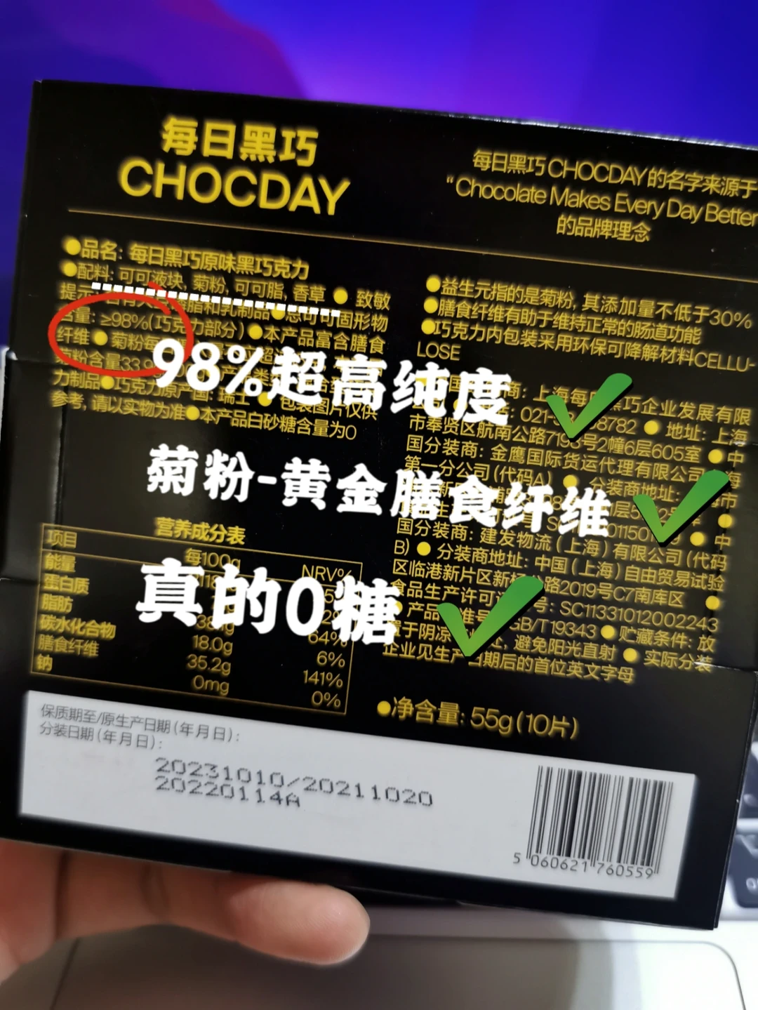 最近一直在吃每日黑巧,配料表超级干净,成分表只有4个