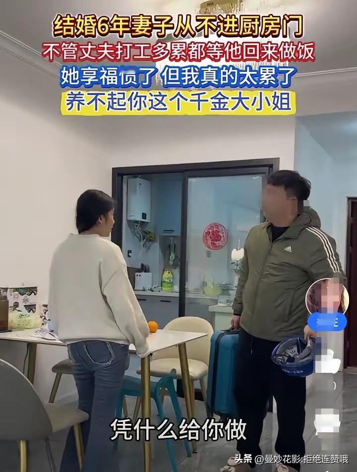 结婚6年,妻子从不进厨房,不买菜,不煮饭,不洗碗! 每天都是男人下班回来买菜煮饭,不管男人白天上班有多苦多累,妻子都要等他回来做饭! 男人这些年可以说是把妻子宠成了公主,因为妻子年轻漂亮,当年追求她的时候可是下了血本,彩礼花了18万! 而妻子宅家刷手机当甩手掌柜,每月3000零花钱照拿不误! 婚姻从不是单方面的供养,再漂亮的脸蛋,也经不住一味索取的消耗。所谓“宠”是相互体谅,不是无底线纵容,当付出变成理所当然,感情早就在柴米油盐的失衡中被榨干。 18万彩礼买不来长久的幸福,面子撑不起摇摇欲坠的婚姻。好的夫妻该是搭伙过日子,你知我赚钱辛苦,我懂你操持不易,而非一方当大爷一方做牛马。 这场失衡的婚姻,到底是该及时止损,还是再给彼此一次沟通的机会?你觉得这样的关系还有坚持的必要吗? 彩礼漫天要价 无彩礼的婚姻 彩礼陷阱 索要彩礼 大龄彩礼 彩礼下降 3万彩礼
