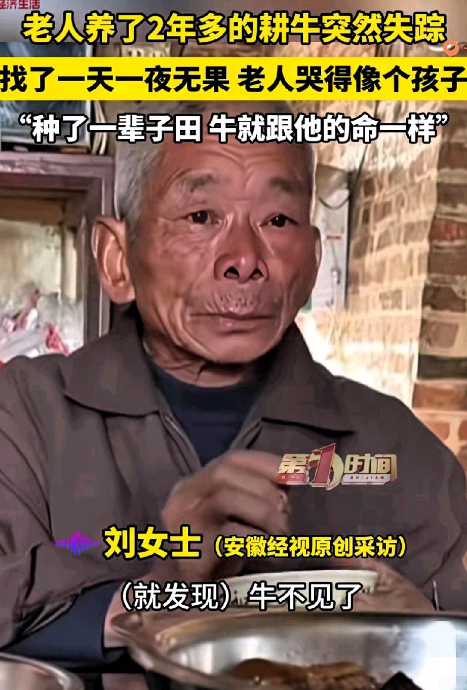 一头耕牛的失踪,竟让一位种了一辈子田的老人哭得像个孩子! 这不是戏剧桥段,而是真实发生的事。 老人养了两年多的耕牛突然不见,只留下一根绳子,他找了一天一夜毫无头绪,那崩溃的模样,看了真的让人鼻酸。 在很多人眼里,耕牛只是劳作的工具,可在这位老人心里,它早不是牲畜,而是朝夕相伴的家人,是扎根土地一辈子的精神寄托。 我们总说时代在进步,机械化替代了传统农耕,却忘了对这些老农人而言,牛不仅是干活的帮手,更是他们与土地、与一辈子生计的联结。 这种情感,不是冰冷的机器能替代的。 老农人对耕牛的深情,藏着的是对土地最质朴的执念,也是刻在骨子里的生活信仰。 你身边有没有这样带着老情怀的人和事?不妨在评论区说说吧。