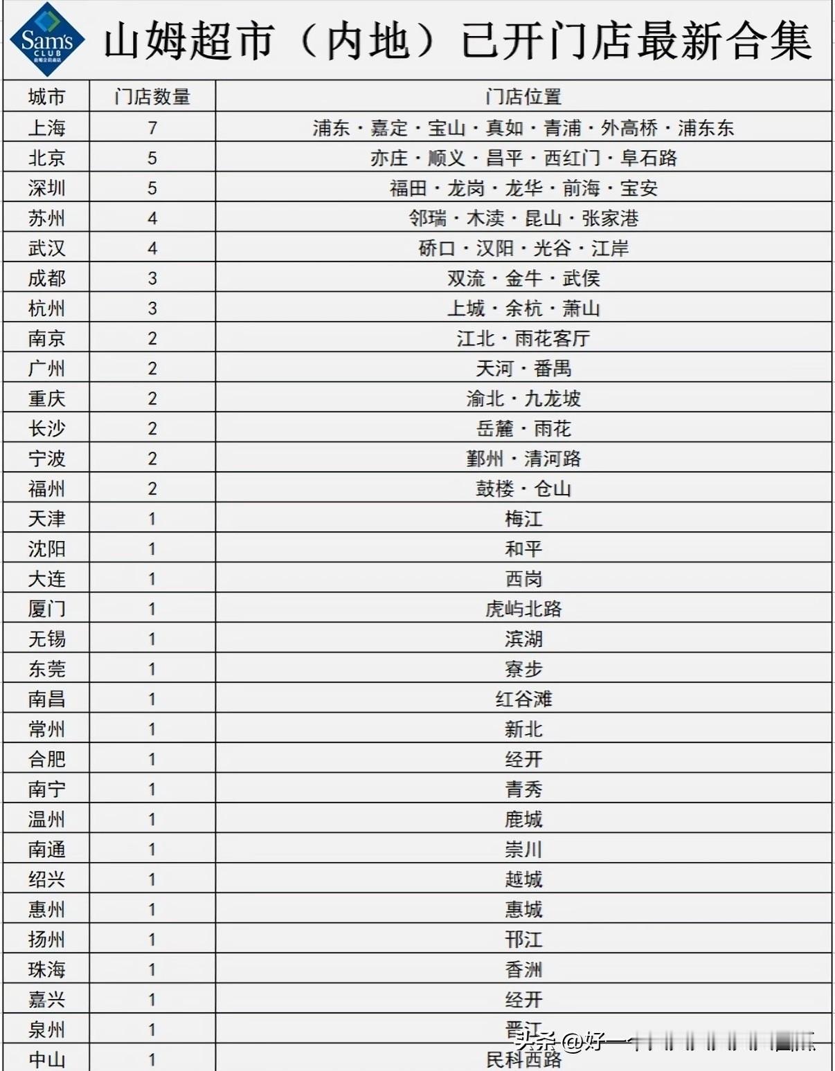 为什么山姆这样一个会员制超市可以做到这样的年销金额, 因为现在全国也才63家山姆门店, 可他就靠着这63家门店居然能够做到上千亿的销量, 接下来有一个十分明显的趋势, 就是沃尔玛集团一定会在中国全面铺开山姆超市的布局, 现在63家山姆超市也仅仅在32个城市有, 还有很多城市是没有山姆的, 中国如此赚钱的市场沃尔玛很明显想好好深耕一下。
