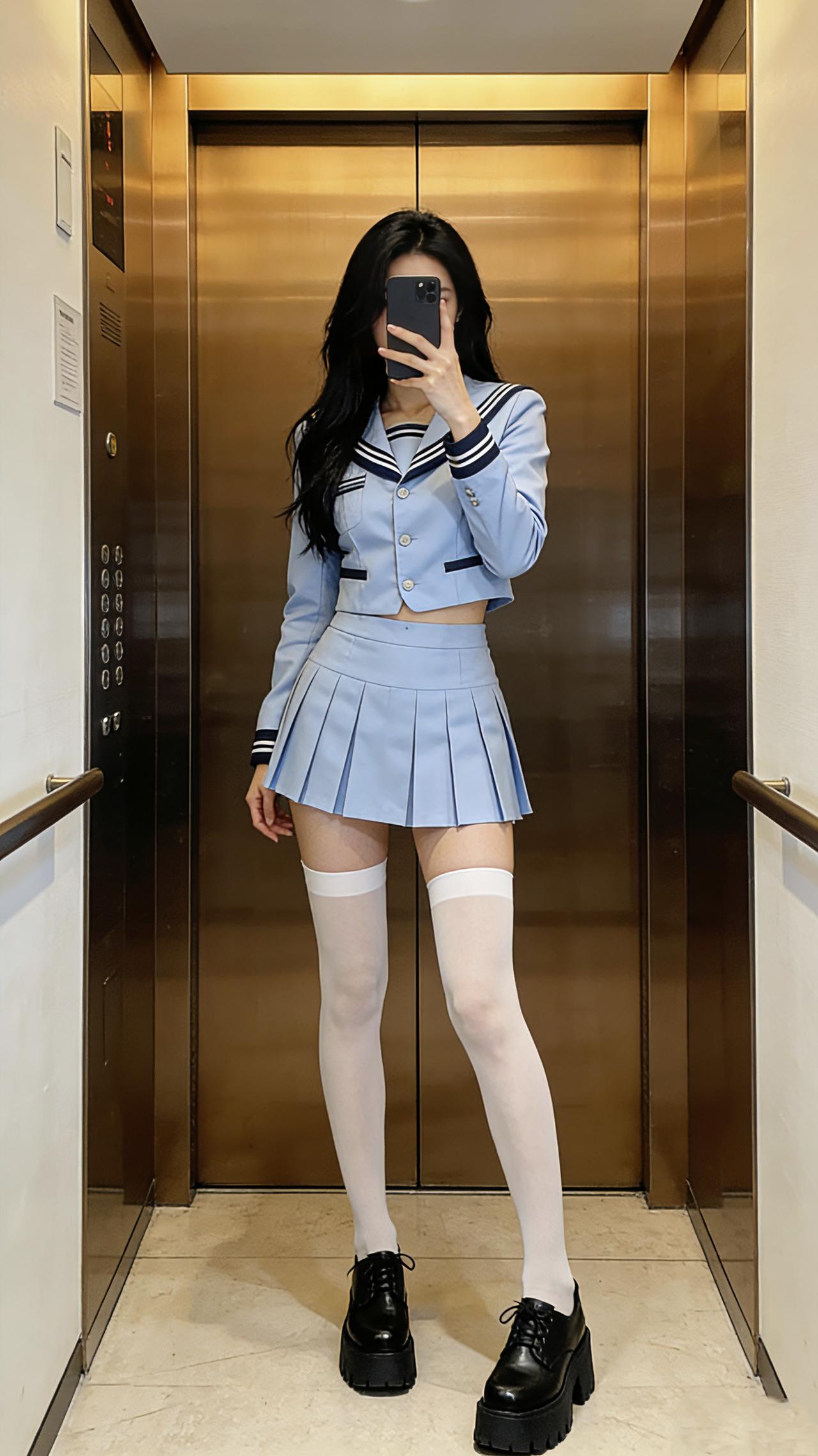 谁不喜欢纯纯的呢?电梯里的美美白丝。电梯拍照 小个子穿搭 白丝青纯美少女