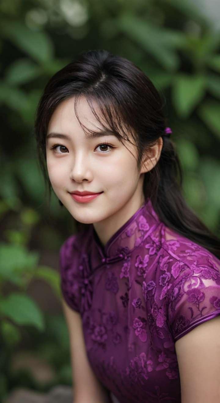 AI扩图AI紫裙旗袍韵