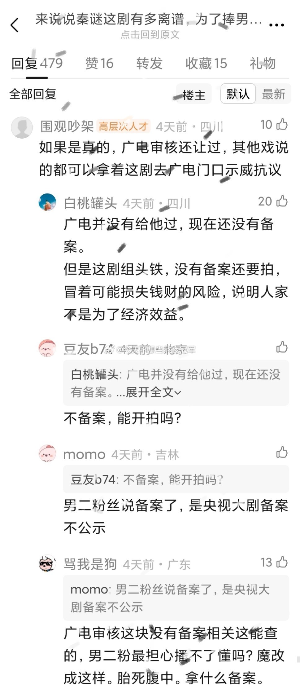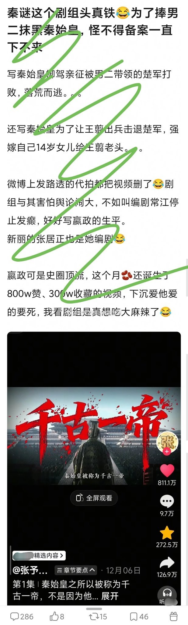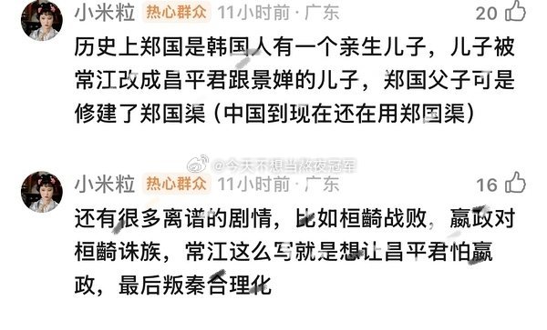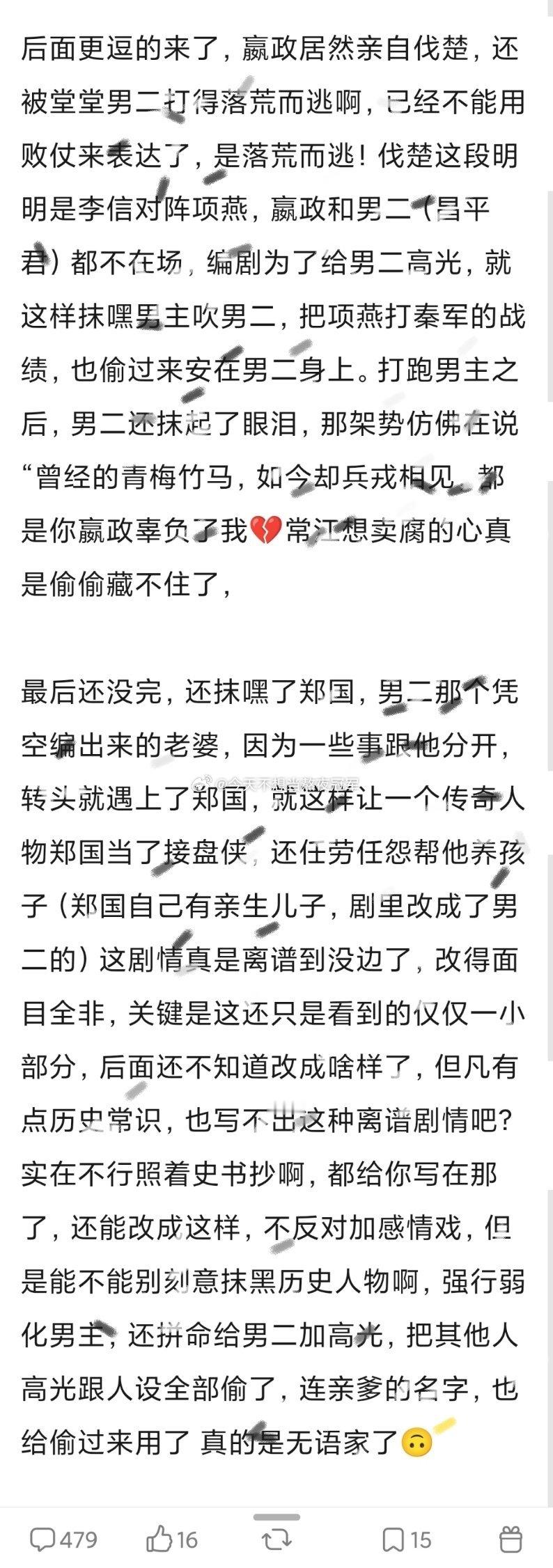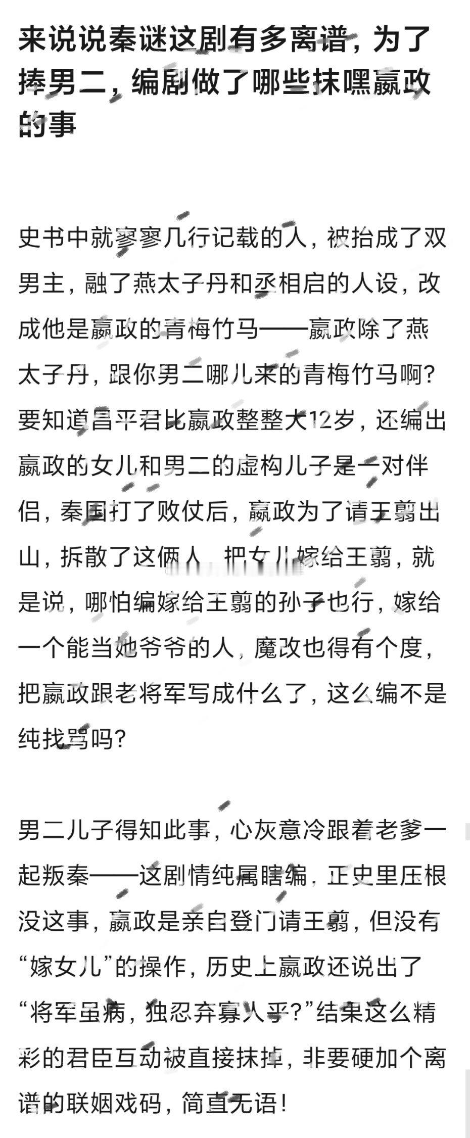 陈晓 张新成《秦谜》这剧幺蛾子不断啊,剧组为了给张新成演的男二加高光,甚至抹嘿秦始皇。。。这是忘了《巴清传》《霍去病》(风起大漠)的前车之鉴了?历史粉的大聚宝可不是吓唬人的篡 改历史给一个空气人抬轿,那就别用历史人物的名字,直接拍架空剧啊。。。