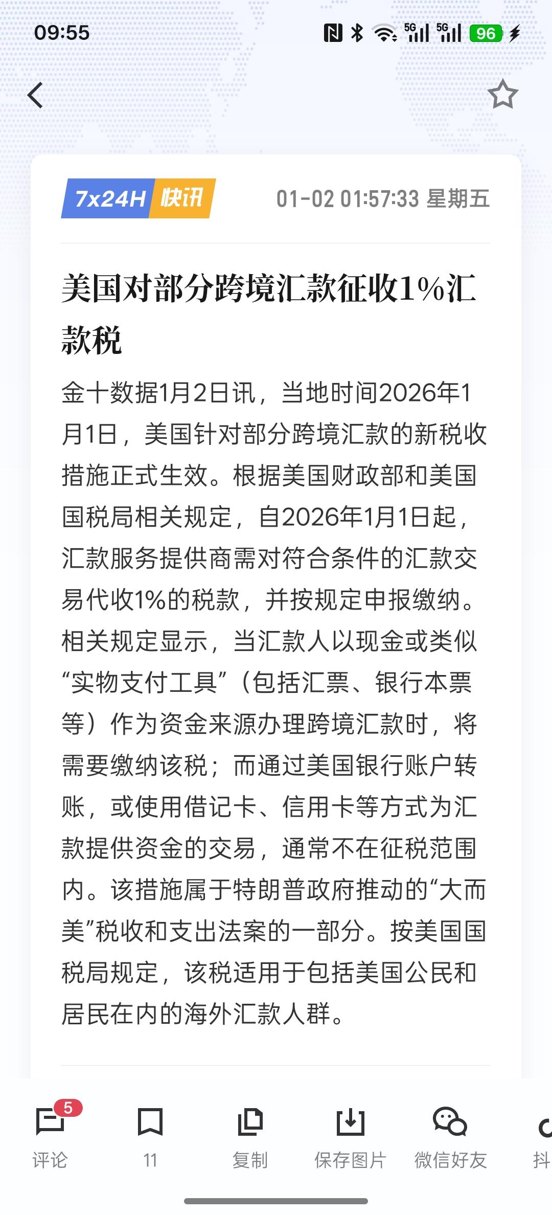 美国对部分跨境汇款征收1%汇款税,这对于美国资本来说将不是友好,想离开美国的资本以及外部资金都将按照美国征收1%的税收!美国是想要把资金留在本土,资本留在本土!美国收取这些费用,也极大地增加了美国财政收入!所以特朗普还是有点魄力的!