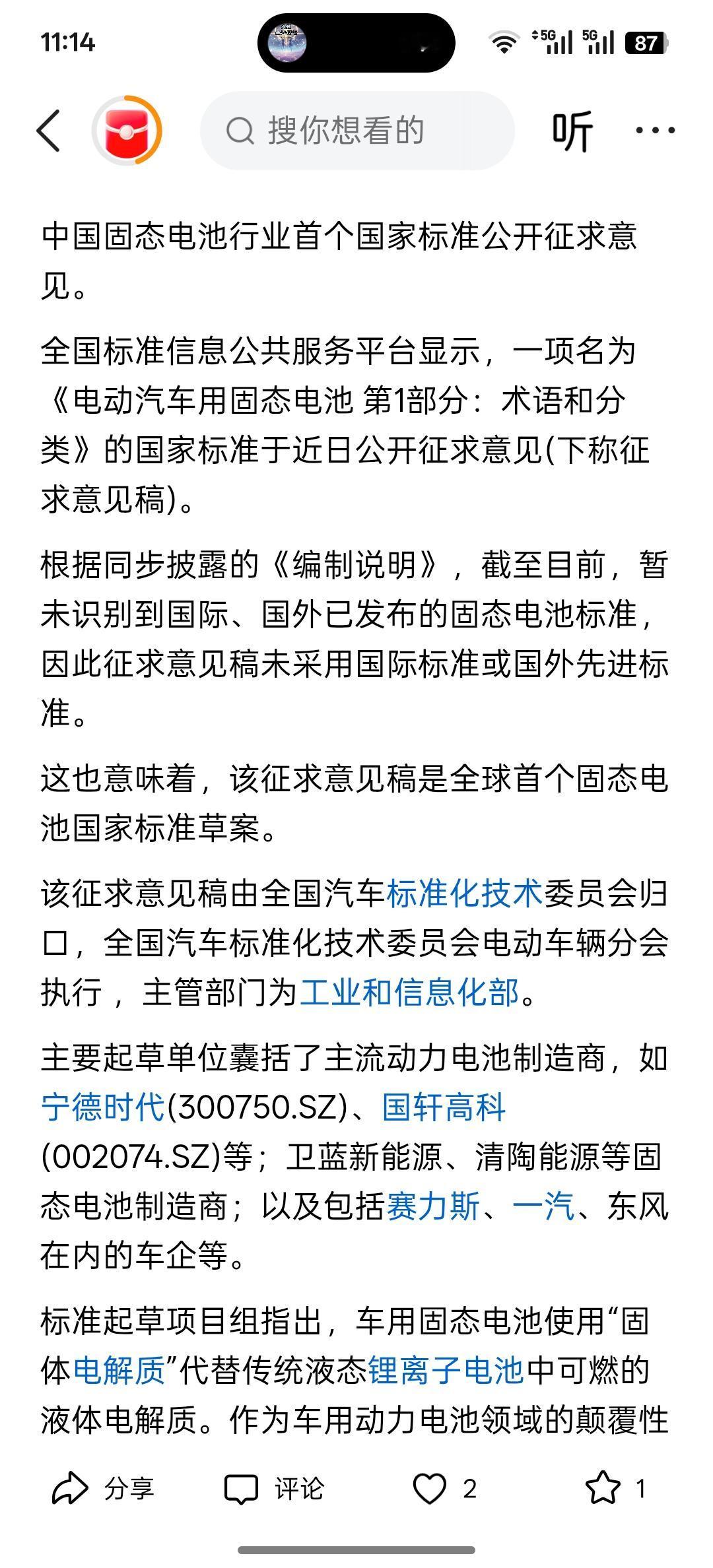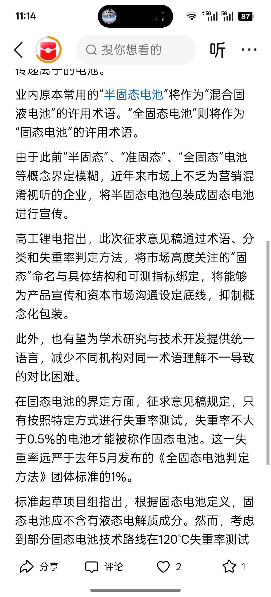 “半固态”出局!中国制定全球首个固态电池国标,中国固态电池的发展加速推进,中国要的是全固态电池发展,固态电池在低空领域以及低空经济将起到很大的作用,包括人形机器人,未来有固态电池将会得到极大的发展,续航能力无焦虑!整个储能系统同样会释放更大的有用价值!