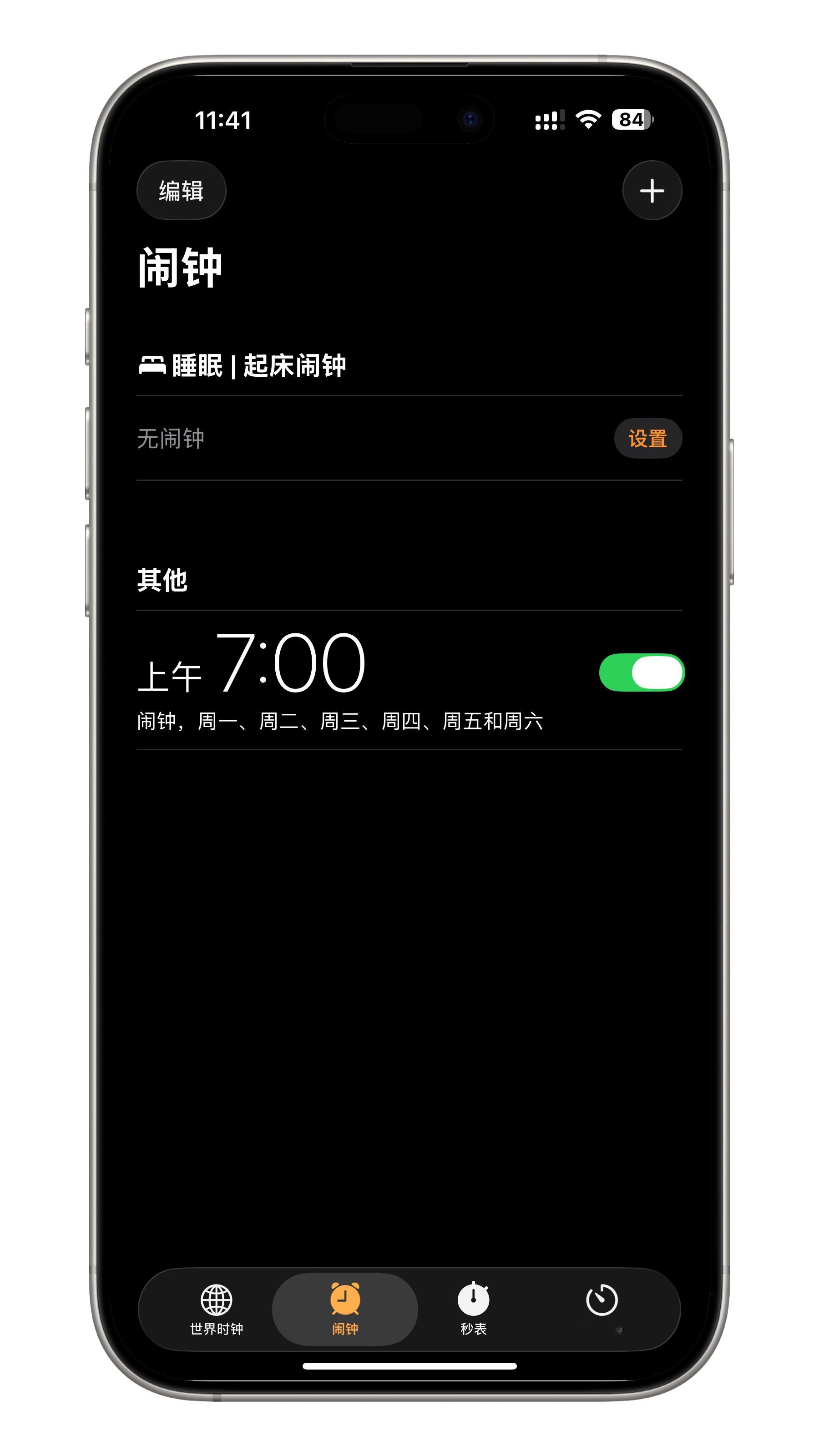 iPhone的闹钟没响今天忘记是周末调休了没设置上又睡过头了