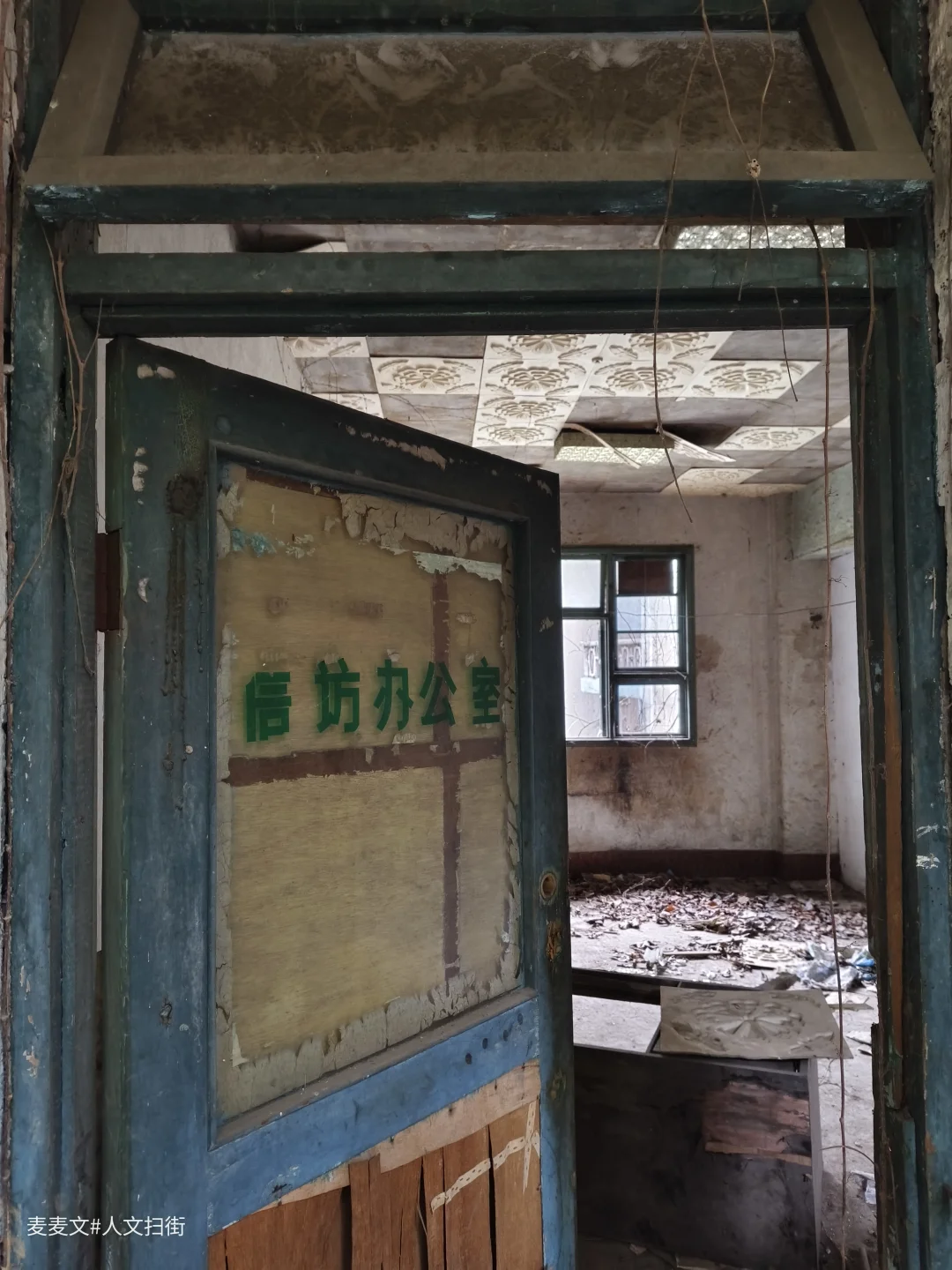 如今,当我们走进这片曾经热闹非凡的土地,留下的只是一片荒凉。大量的职工为了生计不得不背井离乡,寻找新的生活出路。那些布满沧桑的老建筑,仿佛在静静诉说着曾经的故事。走进办公楼的过道,就像进入了一条时光隧道,墙上和地上的老物件,还在默默回忆着往昔的辉煌。