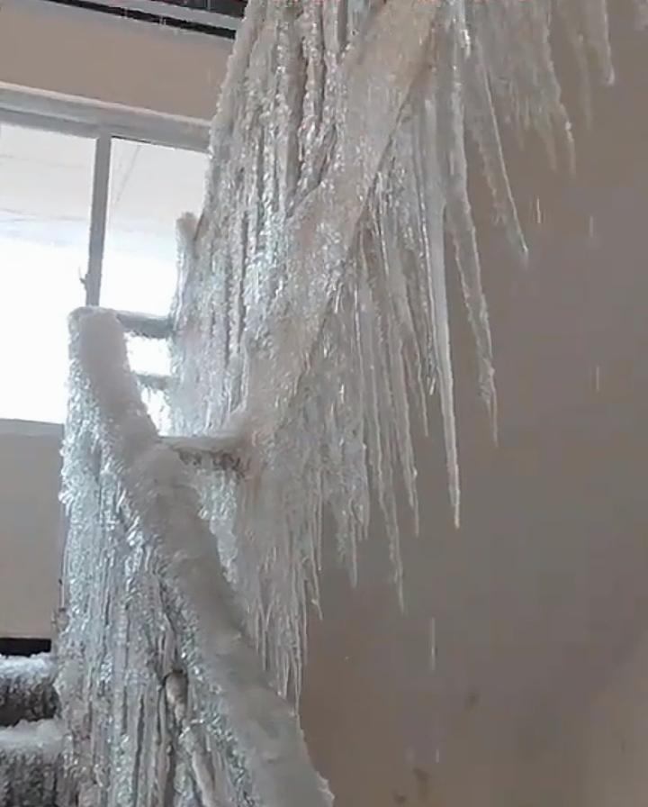 忘关水龙头,家里秒变“广寒宫”!网友笑称:这房是真·被冻结了 冬天忘关水龙头能有多离谱?近日一则视频直接看呆网友:一户人家因疏忽没关水龙头,加上冬日低温,整个屋子彻底变成了“冰雪世界”,楼梯挂满密密麻麻的冰溜子,地面结起厚厚冰层,连门框和家具都被冰壳包裹,活脱脱一座现实版“广寒宫”。 从画面里能看到,水流从水龙头持续涌出后,在低温下迅速凝结,楼梯扶手被冰柱缠满,垂落的冰溜子如水晶帘般壮观,地面的冰面厚到能让人直接在上面行走,有人拿着工具敲冰,冰碴掉落的声响都透着“硬核”。 网友们看完纷纷调侃:“这下好了,房产是真的被冻结了”“这冰雕展都省了门票钱”“求房主回家开门的心理阴影面积”。也有不少人提醒,冬季低温天一定要做好水管防冻,出门前检查水电,避免这类哭笑不得又损失惨重的情况发生。 看似搞笑的画面背后,其实是生活里的粗心隐患,也给大家提了个醒:冬日居家,细节上的留意才能避免不必要的麻烦呀。 冬天