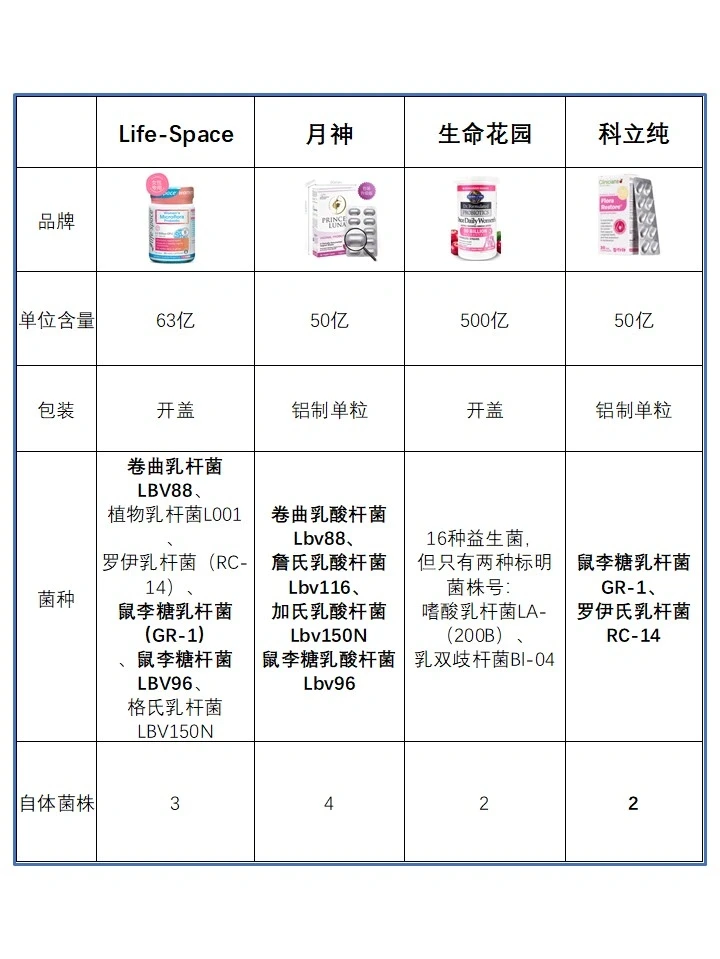 整理了几个网上最火的益生菌,给大家做了个对比