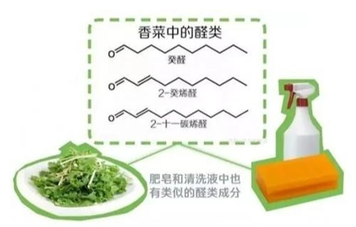 这种变异能使人们对香菜特殊气味的醛类物质异常敏感,可以更强烈地感知到这种特殊气味,以至于闻起来像是肥皂,继而造就了他们对于香菜的厌恶感。