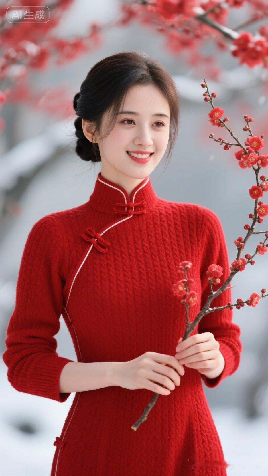 甜美少女风,红黑格纹毛衣,温柔笑容,元气满满!😊👗💖