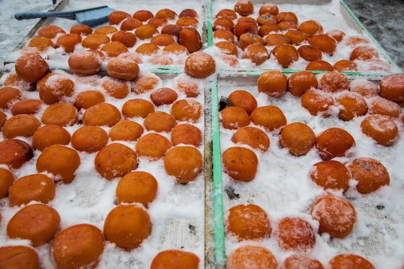 东北万物皆可冻,这话一点不假。在东北,出门就是天然“大冰箱”。 清晨的吉林长春永兴农贸市场,各类冻品尤为醒目。黑黢黢的冻梨、黄澄澄的冻柿子、硬邦邦的冻黄桃和冻李子,全都结着薄霜。这些水果经冷冻后,汁水特别甜,水灵得很。摊主陈毅说因为游客增多,每天营业额能提升好几百。除了水果,还有冻鱼、冻饺子等。在东北,啤酒常温的比冰冻的还凉,毕竟户外温度比冰箱冷多了。万物皆可冻,这独特的现象成了东北的一道别样风景。