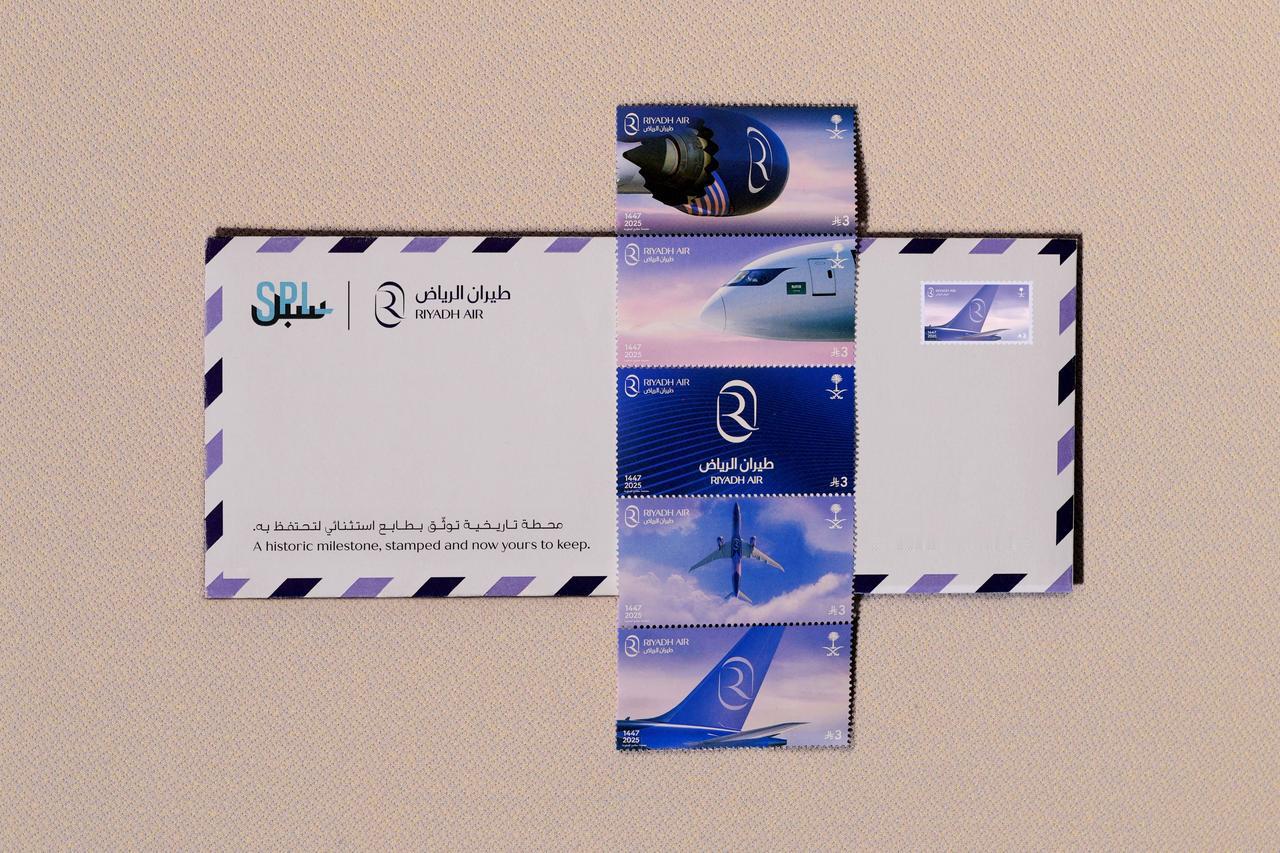 近日,利雅得航空与沙特邮政公司合作发行纪念邮票,邮票上印有利雅得航空的标志和飞机。