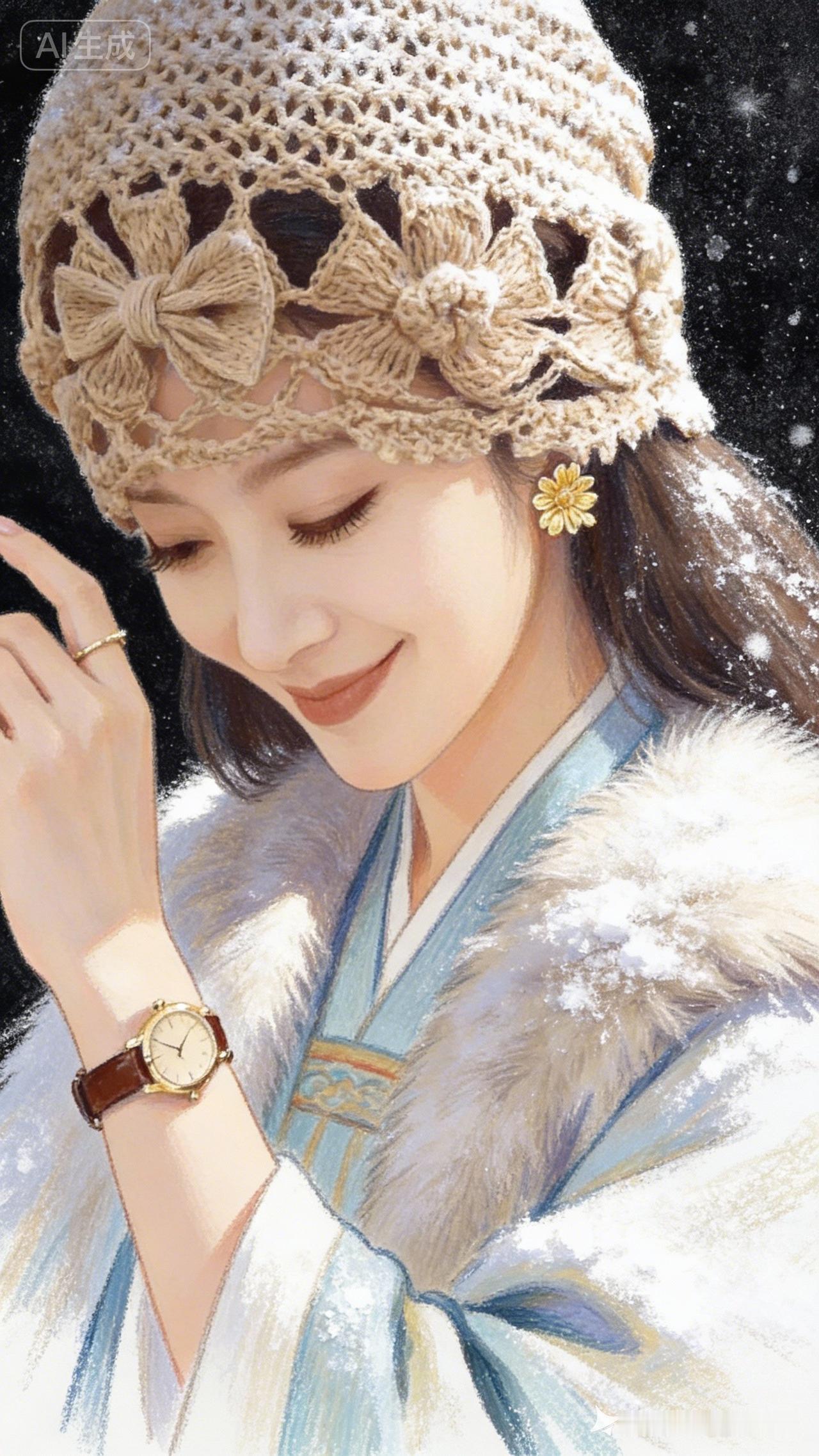 冬日暖阳下的温柔微笑,复古手表与毛绒外套的完美搭配,尽显冬日浪漫。