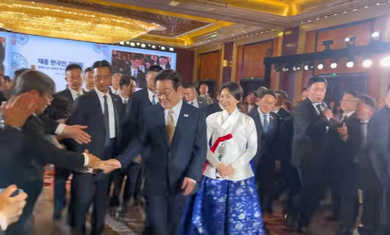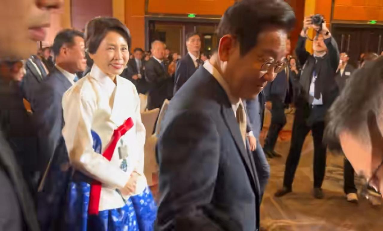 李在明夫妇高光时刻,北京韩侨晚宴结束,现场一位在华韩国网友现场实拍,前呼后拥一大堆人,前后左右保镖开道,商会财团大佬陪着,参加晚宴企业老板们两侧列队,争相与李在明握手,李在明酒饱饭足,酒过三巡,满面春风!不过夫人金惠景,一直显得拘谨,没有金建希那么放得开,也是好事,太狂就进去了!