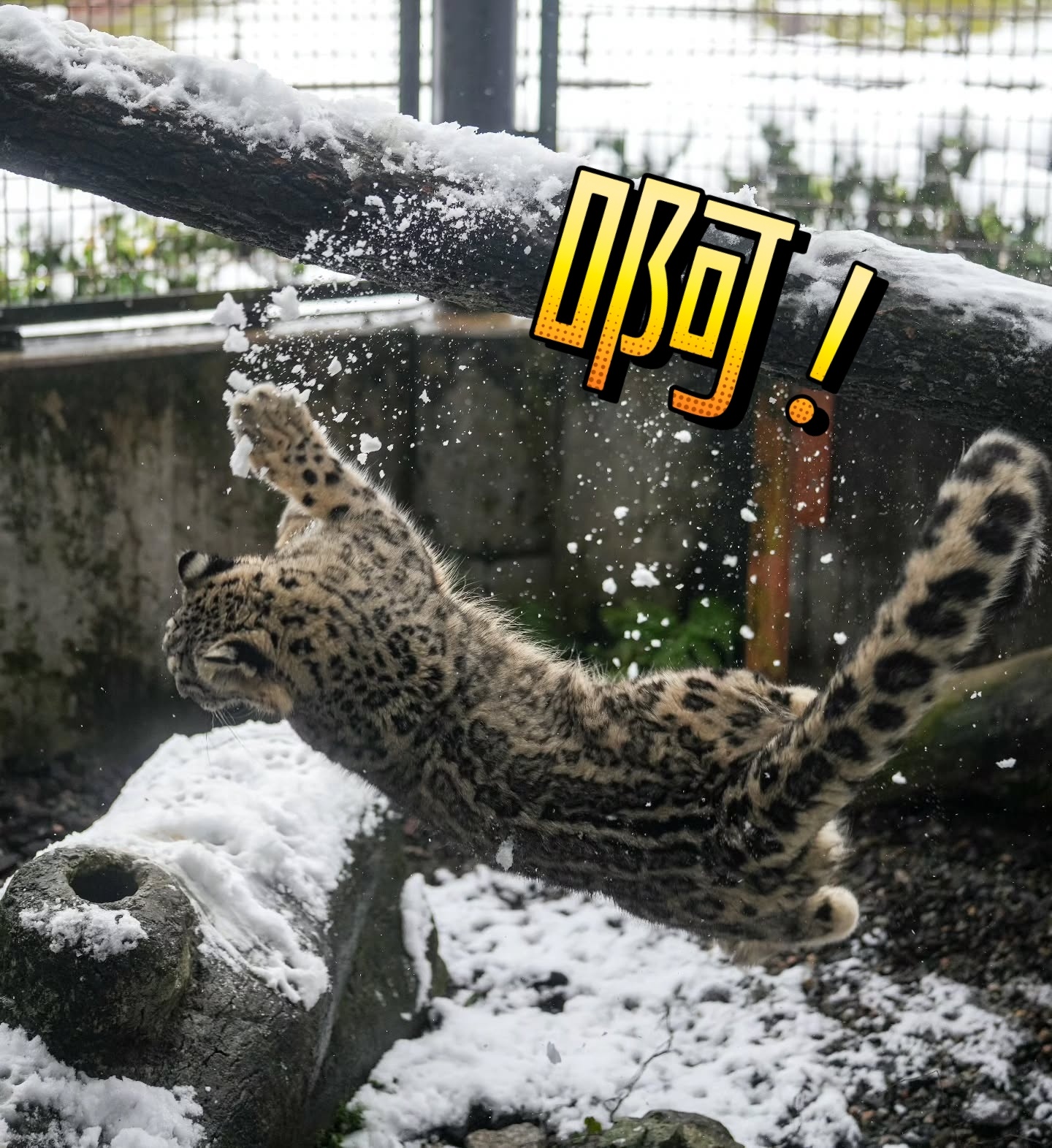 雪豹点击就围观雪豹崽崽脚滑出丑【ins:black03_white03】