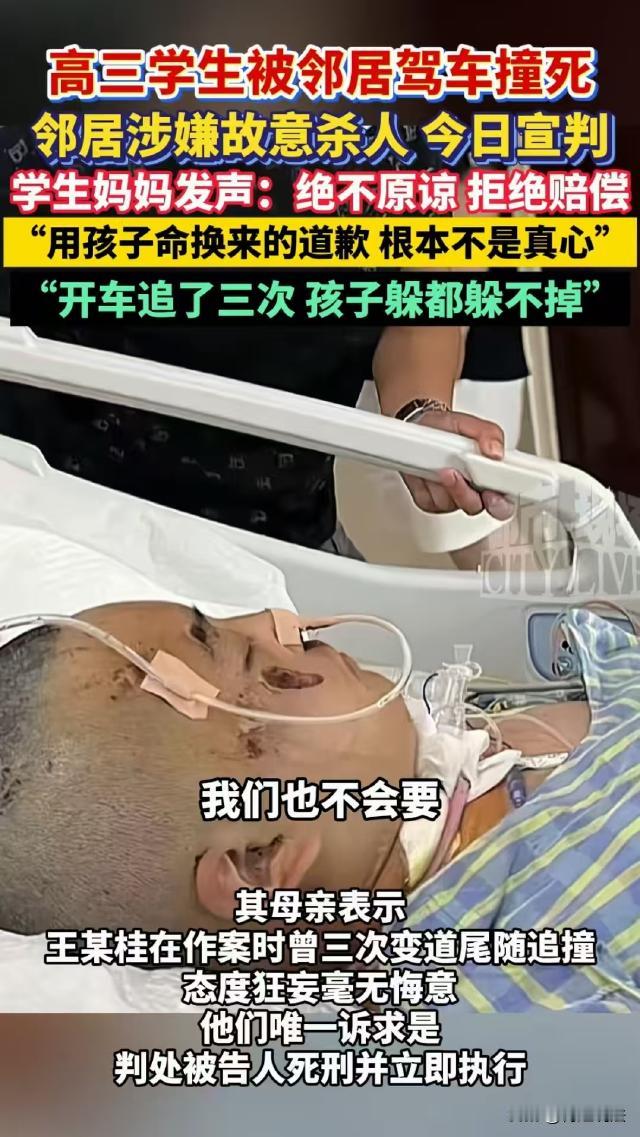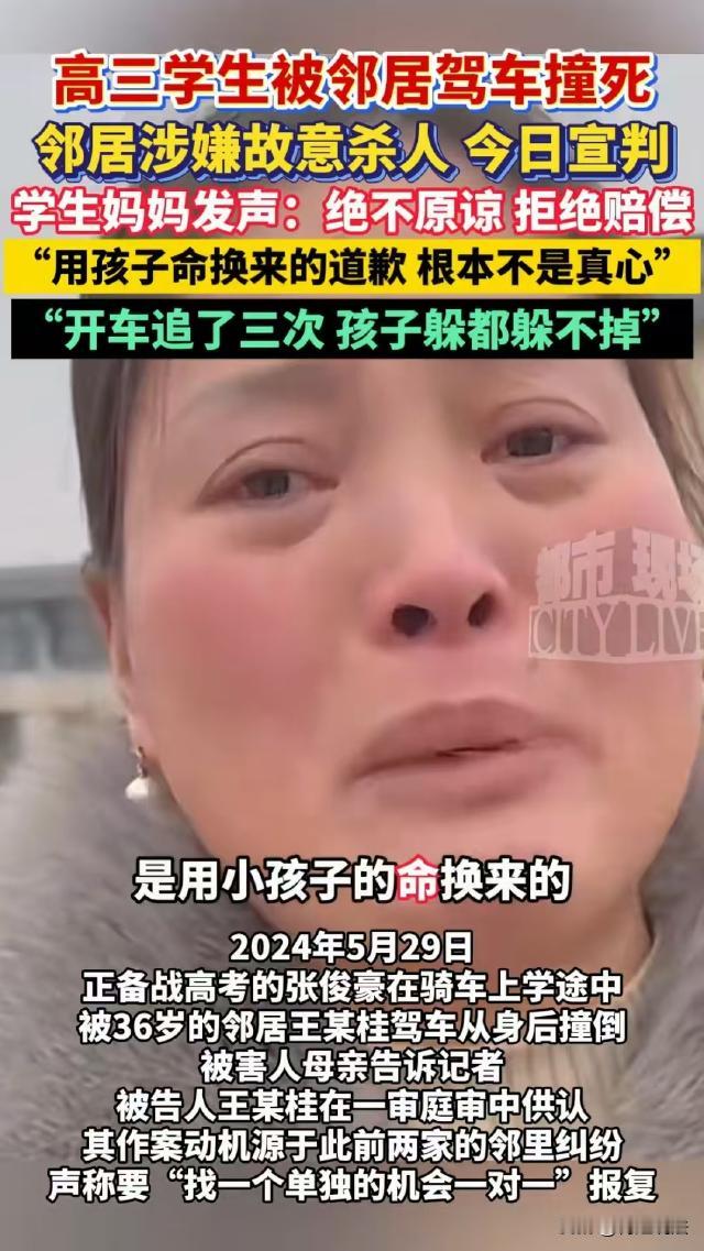 江苏盐城,男子将鸡粪堆在自己家和邻居家之间的过道里,邻居过去交涉,双方一言不合报了警,事后男子怀恨在心,开车撞 死邻居即将高考的儿子。案发后,男子担心被追责,试图将此事伪造成普通交通事故,可他关押期间的狱友证言,男子曾多次告诉他,他被邻居压了一头,就是想报复邻居! 据江西都市现场、潇湘晨报·晨视频等报道,王某桂是响水县某村村民,案发时36岁。 王某桂和被害人张某豪家是邻居,两家人只隔着一条小巷子。 张某豪的父亲比王某桂大几岁,两人可说是从小一起长大的。 张某豪的父亲早就娶妻生子,小儿子也马上要高考了,还是在市重点高中就读。 可王某桂马上40岁了还在打光棍,也没有正式工作,平时只能和老母亲在家务农。 2024年春节,张某豪一家回老家过年。 正月初八那天,王某桂在两家之间的路上堆鸡粪,张某豪的父亲过去找王某桂,想让他挪开,可王某桂态度非常差,两人发生了争执,并互相推搡。 张某豪的哥哥赶紧过去抱住王某桂,张某豪从屋里出来,让他们不要吵,还说他已经报警了。 没想到,这句话激怒了王某桂,他冲张某豪喊:你就是张某豪啊?就是你要考大学啊?我要让你上不了大学! 2024年5月29日13点许,王某桂开着车回家的路上,突然看见路边有个小伙子在骑车,这个小伙正是张某豪。 案发当天,张某豪正骑车准备去上学,王某桂看到他,曾经两家的矛盾再次涌上心头,于是他调转车头,过去追赶张某豪。 随后,王某桂加快车速,将张某豪撞倒在地。 为了逃避责任,王某桂特意选择一辆公交车路过时才撞向张某豪,想将这件事伪造成被遮挡视线,发生的交通意外事故。 张某豪被撞后,王某桂打了110和120,并在报警时,将故意撞人说成是普通交通事故。 张某豪伤势非常严重,在昏迷一年后,还是离开了。 据张某豪的老师说,他学习成绩非常优秀,有很大机会考上重点大学。 案发后,王某桂最开始承认自己是故意报复,可后来又翻供,称自己当时男子发昏,但经司法鉴定,案发时王某桂不存在精神异常。 2026年1月5日,本案迎来一审判决,张某豪的家属提供的一份证据显示,撞张某豪,就是王某桂故意的。 在被羁押期间,王某桂曾多次和一个狱友说,他一直被邻居压了一头,撞张某豪就是为了报复! 但最终,一审还是判王某桂犯故意杀 人罪,判处其死刑,剥夺政治权利终身。 张某豪的辩护人称,王某桂承认自己犯故意伤害罪,不认故意杀 认罪,但是并未对量刑意见提出异议。 王某桂只承认故意伤害罪,不承认故意杀 人罪,这两个罪名之间有什么区别? 《刑法》第二百三十四条规定,故意伤害他人身体的,处三年以下有期徒刑、拘役或者管制。犯前款罪,致人重伤的,处三年以上十年以下有期徒刑;致人死 亡或者以特别残忍手段致人重伤造成严重残疾的,处十年以上有期徒刑、无期徒刑或者死刑。 《刑法》第二百三十二条规定,故意杀 人的,处死刑、无期徒刑或者十年以上有期徒刑;情节较轻的,处三年以上十年以下有期徒刑。 二者的关键区别在于犯罪故意的不同。 故意伤害罪的故意内容是损害他人身体健康,而故意杀 人罪的故意内容是非法剥夺他人生命。 那么,王某桂为什么构成的是故意杀 人罪,而不是故意伤害罪呢? 2024年春节期间,王某桂与张某豪一家因堆鸡粪一事发生争执,他就曾冲张某豪喊出“我要让你上不了大学”,这样带有明显报复和伤害意图的话语。 2024年5月29日,王某桂看到张某豪骑车上学时,特意调转车头追赶,并且加快车速将其撞倒。 为了逃避责任,王某桂还选择公交车路过时撞人,试图伪装成交通意外。 王某桂的这些行为表明,他主观上具有非法剥夺张某豪生命的故意。 王某桂并非仅仅是想伤害张某豪的身体,而是通过积极的行为,有计划地实施了对张某豪生命的侵害。 王某桂的一系列举动,包括事先的言语威胁、有目的的追赶和撞击,都显示出他追求张某豪死 亡结果的主观心态。 虽然王某桂后来翻供,称自己当时脑子发昏,但经鉴定,案发时他不存在精神异常。 而且,王某桂在被羁押期间向狱友透露,撞张某豪就是为了报复,这进一步证明了他具备故意杀人的主观故意。 最终,一审认为,王某桂的行为造成了张某豪死亡的严重后果,且其主观恶性极大,手段恶劣。 依据《刑法》第二百三十二条,结合案件的事实和证据,认定王某桂构成故意杀 人罪,判处其死刑,剥夺政治权利终身。