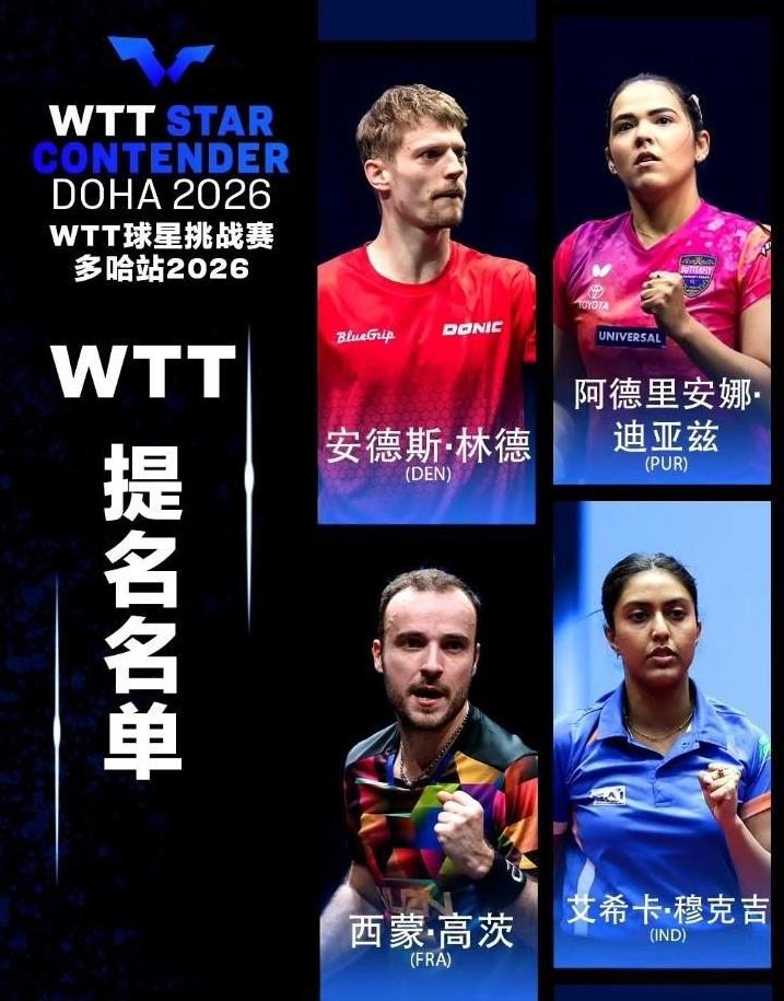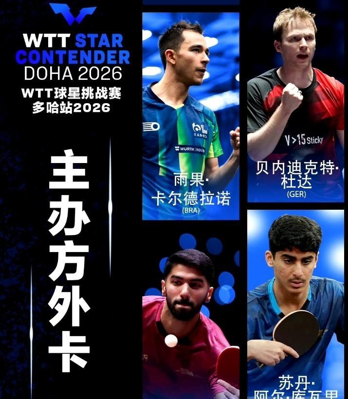 林诗栋等国乒男队主力再受大考。 因为,雨果和杜达获得了多哈球星挑战赛外卡。 国乒男队温瑞博生日这天,同时也获得了多哈球星挑战赛青少年组的提名卡。 #记录我的2026# 女队这张提名卡给了韩国女队的刘叡潾,她也算是韩国女队后备军的头部。 而多哈球星挑战赛成人组的提名给了林德、西蒙,女队给了迪亚兹和印度的穆克吉。 外卡给到杜达和雨果,这给男队又带来竞争呀! 林诗栋领衔的国乒男队,将面对外协大主力的竞争。 而女队以蒯曼领衔,也会迎来外协大主力的挑战。 多哈球星挑战赛,与多哈冠军赛相隔一天开打。 男队和女队一样,都要受到外协大主力的挑战。 国乒加油!