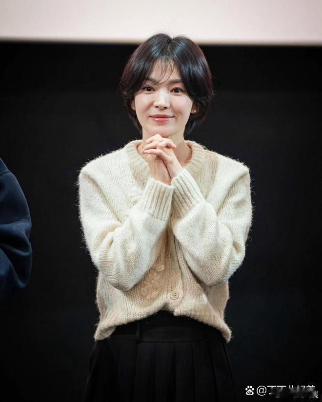 43岁宋慧乔剪短发简直是大回春!一袭米色毛衣搭配黑色半身裙,不仅时髦感拉满,更透着温柔气质,减龄效果直接翻倍!
