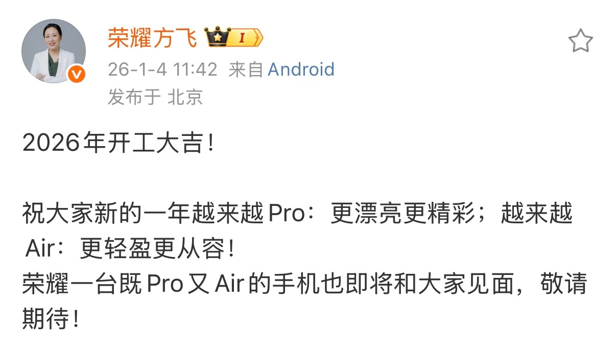 方总又透露新机了,继Pro又Air,轻薄旗舰又有新选择。感觉荣耀产品节奏就没断过,荣耀Magic 8系列、荣耀500系列、荣耀WIN、荣耀Power2……熟悉的荣耀回来了,机圈实力派,一切用产品说话