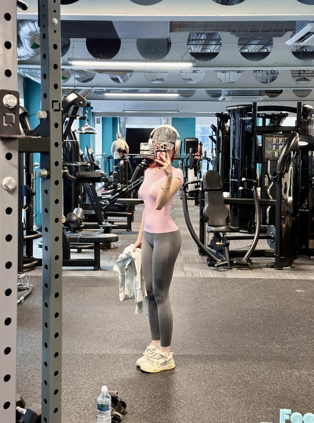 健身的温柔治愈力清晨的健身房里,暖光漫过玻璃窗,落在粉色瑜伽垫上,浅粉运动