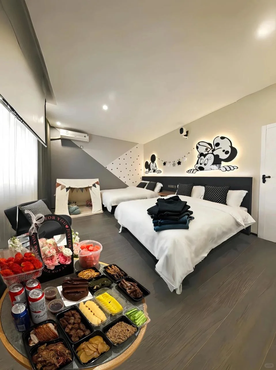 高清投影特别舒服!逛完回来,躺着追剧,还能泡个澡解乏🛁!贴心的是,浴巾、毛巾、马桶垫都是一次性的,干净卫生满分!双层窗户隔音,睡着安心。