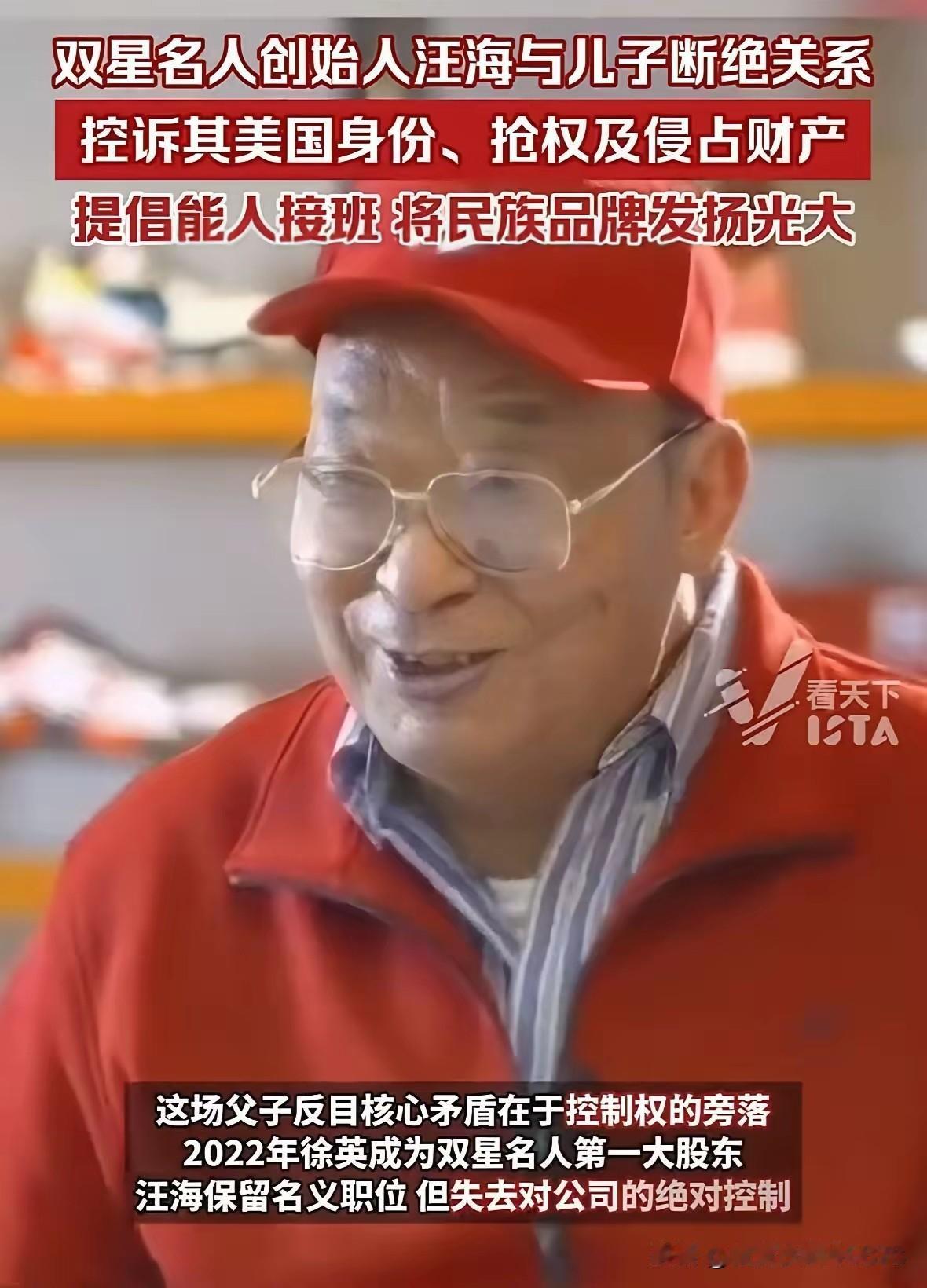 曾击败耐克的百年鞋企双星名人,竟陷入家族内斗! 创始人汪海老爷子,最终忍痛做出决定,与儿子一家断绝关系! 事情缘由是,为争权夺利,亲生儿子、儿媳和孙子几次将老爷子软禁家中,限制其人身自由,后来还发展到抢夺公章、胡乱发号施令。 实际上,汪老爷子不愿放权,是因为儿子一家均为美国国籍!他直言不想让一个民族企业落入外国国籍者手中! 仅这一点,就足以让汪海老爷子令人肃然起敬!
