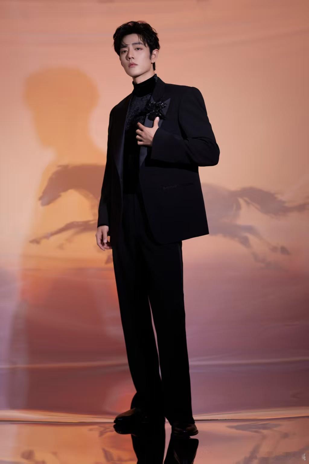 李昀锐让今夜升温 李昀锐以一身黑色暗纹西装锁定全场。如同暗夜淬炼出的锋芒,不必声