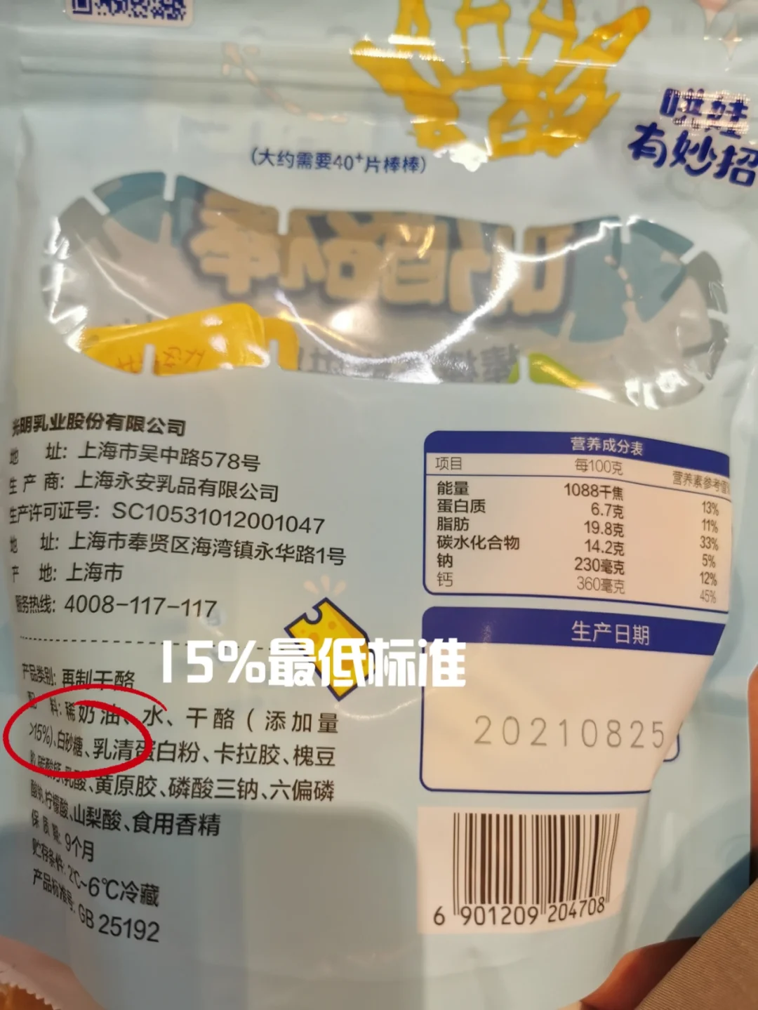 根据干酪国标🎯,产品中干酪添加量只要大于15%即可✅