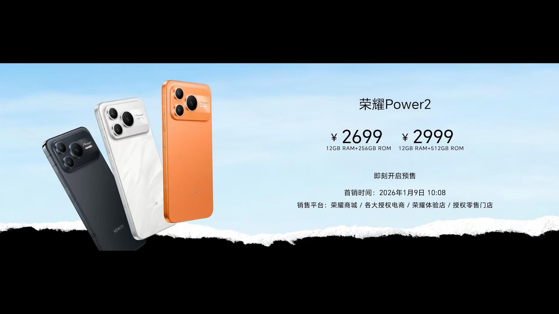 荣耀Power2今晚正式发布,10080mAh的青海湖电池配合80W快充和27W反向快充,直接解决续航焦虑;25根天线、低频超级四天线与SRTC五星认证,把弱网、电梯和户外场景的通信稳定性拉到同档位天花板;天玑8500 Elite搭配荣耀幻影引擎,跑分成绩240万,再加上8000nits护眼屏、IP68/69/69K满级防护、全场景NFC与红外,妥妥的就是一台为重度使用、户外和复杂环境准备的“全能耐用型手机”。价格方面荣耀Power2 12GB+256GB 2699元荣耀Power2 12GB+512GB 2999元