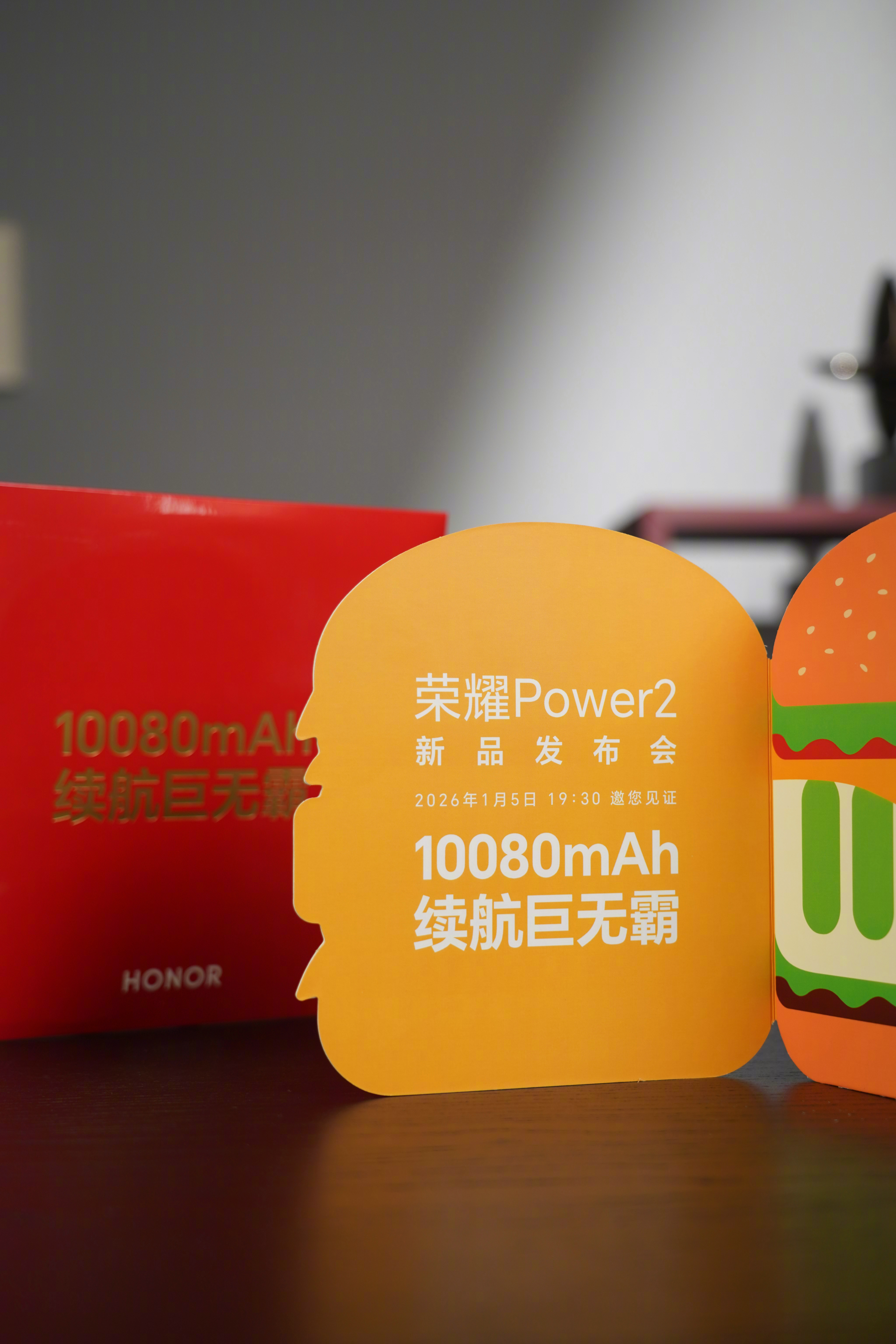 收到荣耀Power2发布会邀请函,联名麦当劳巨无霸🍔直接把暗示写脸上:续航巨无霸来了。邀请函上写着这次给到了10080mAh超大电池,荣耀今年在续航这条赛道是真的往死里堆料……而且盒子里还塞了5张麦当劳20元代金券兑换码,今晚可以边吃麦当劳边看发布会了,仪式感拉满。今晚见,到时候看看这块大电池可以给我们带来什么全新体验!