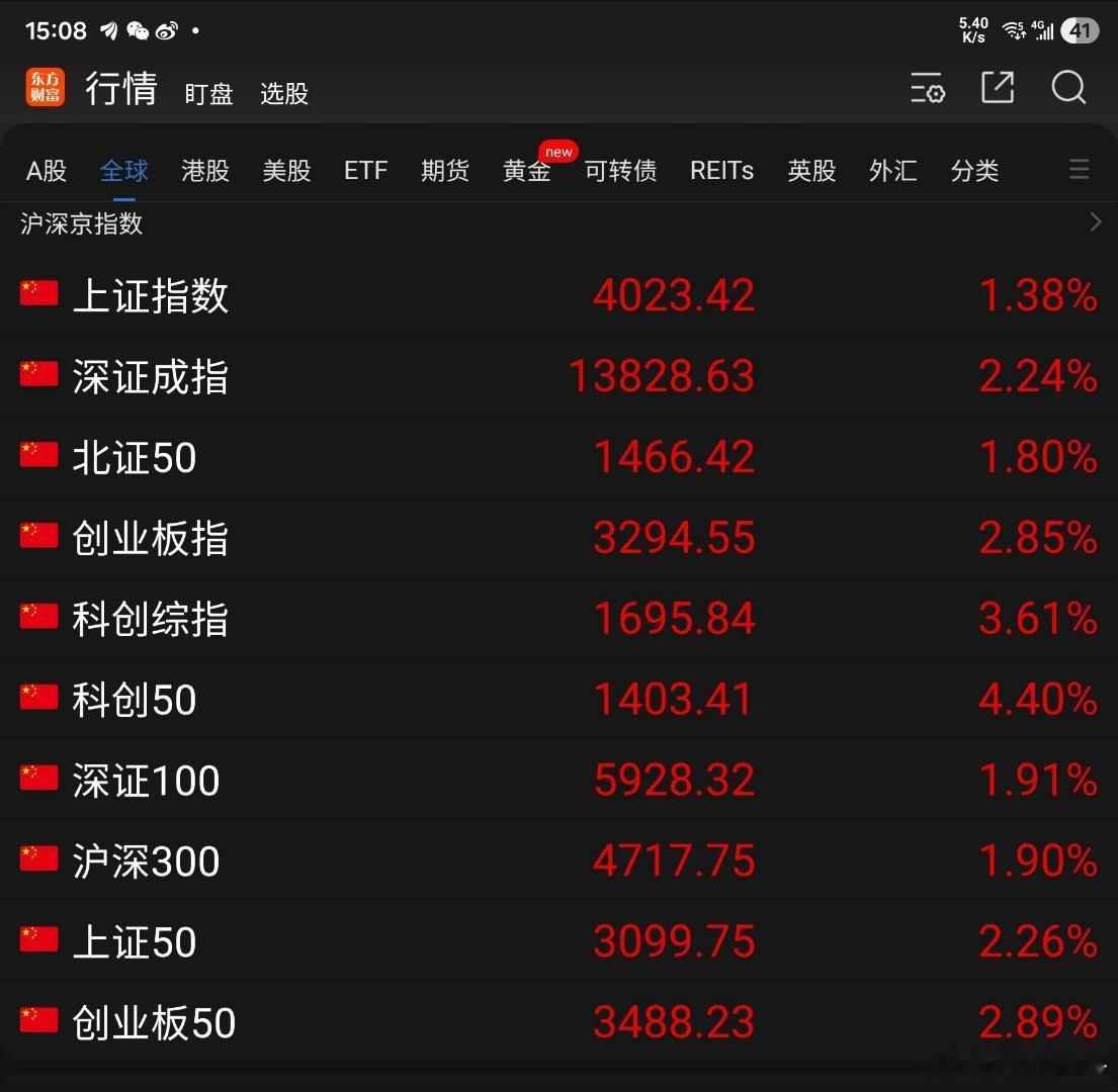 今天是A股2026年的开张之日,大盘走势如虹:东方财富App显示的10项指数全体大涨收红,上证指数大涨1.38%至4023.42点,突破了4000点大关; 深证成指暴涨2.24%至13828.63点;创业板指暴涨2.85%至3294.55点;科创综指暴涨3.61%至1695.84点......个股走势喜人: 沪深京三交易所中,上涨的股票有4062支,其中涨幅在7%以上的有282支; 持平的股票有98支; 下跌的股票有1121支,其中跌幅在7%以上的有28支。三个市场全天的成交量为25674亿元,比去年收官日大幅增量5016亿元,站上了2.5万亿元关口。今天A股量能与个股双双走强,可谓收获了新年开门红,亦为2026年股市长虹带来了满满的人气,后市慢牛可期