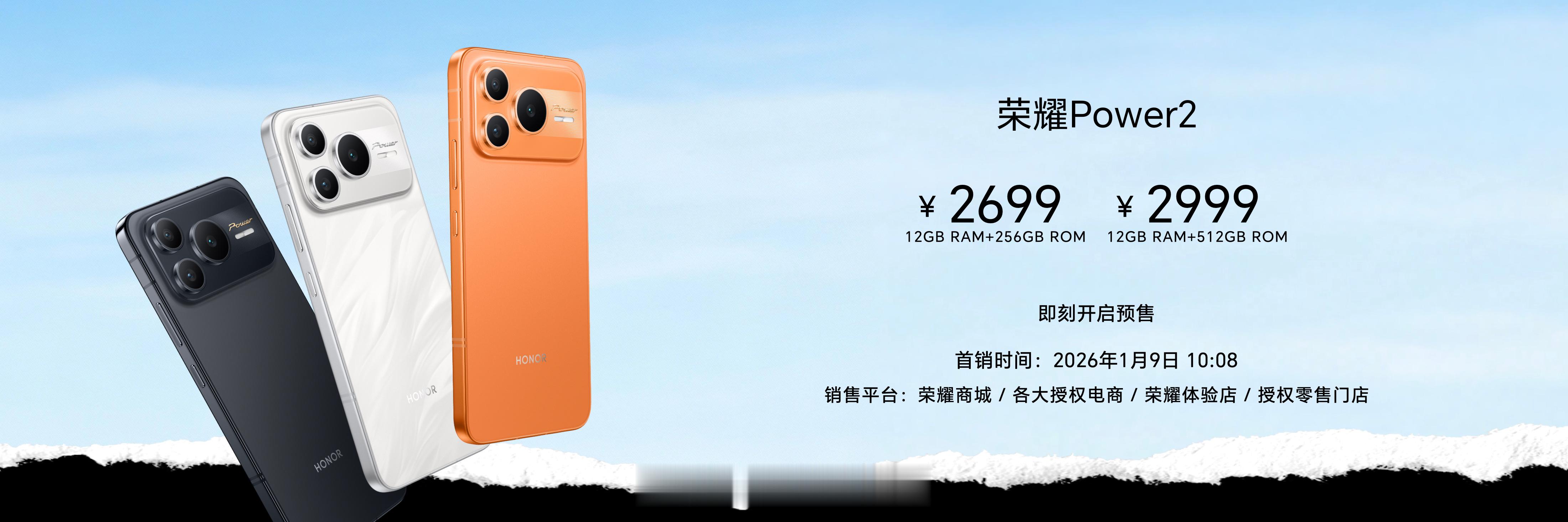 荣耀Power2发布国补售价2294元起 续航巨无霸价格杀疯了!12GB+256GB只要2699,国补后直接2294起,这性价比谁看了不迷糊!10080mAh超大电池续航拉满,首发天玑8500 Elite芯片稳坐同档跑分王,还有平行双轨天线+满级防护,妥妥城野两栖全能选手。大家冲不?