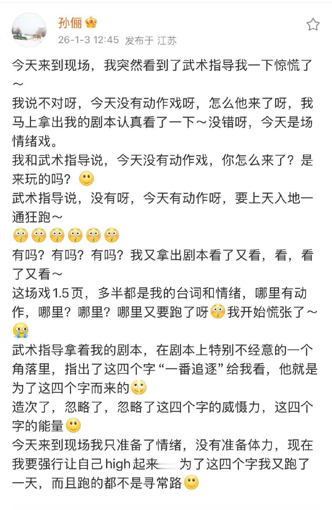 孙俪分享剧组日常好喜欢看俪姐分享剧组日常,请继继续分享,不要断好嘛~