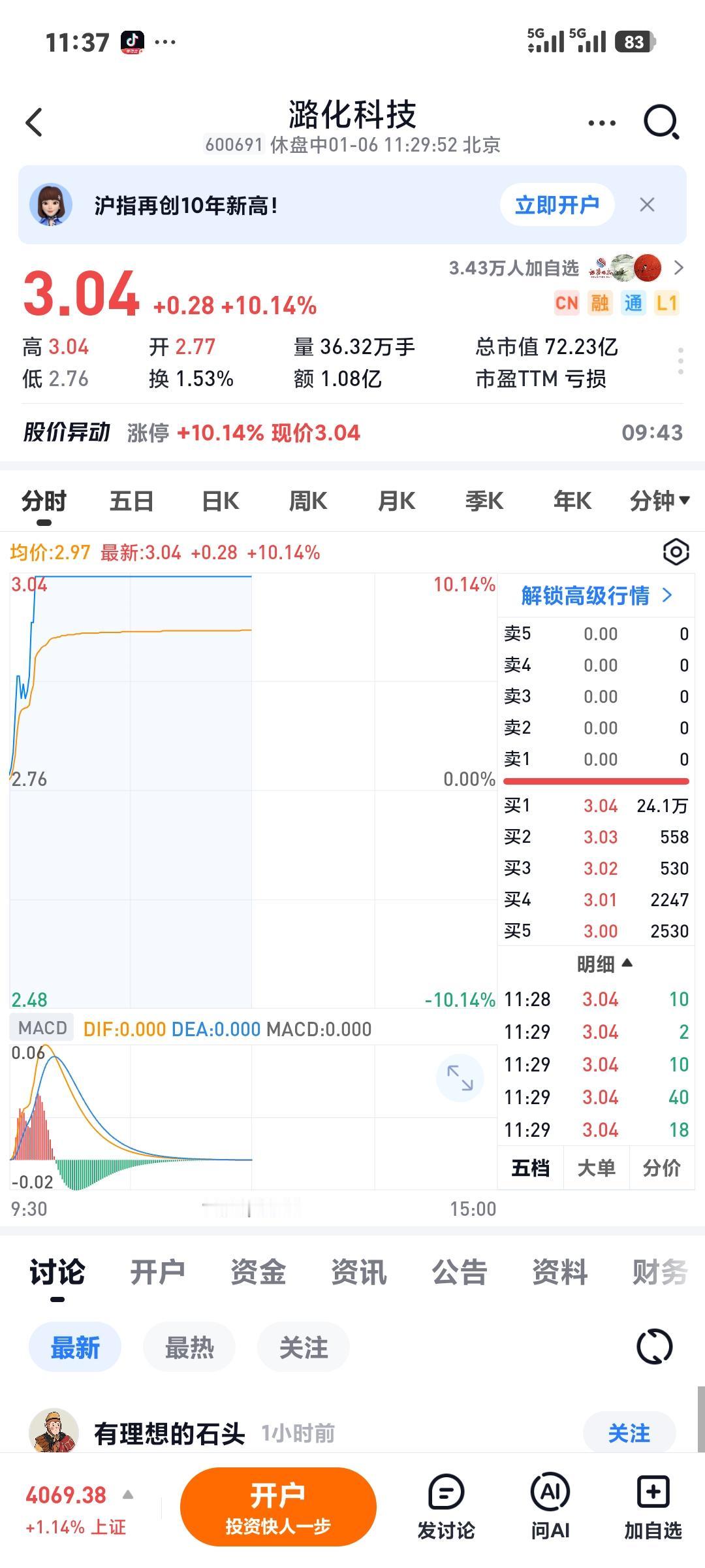 沪指开门红 上午收盘4011点,大涨42.61点,锂电,芯片,航