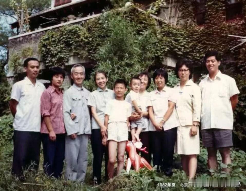 1982年夏,北京大学生物系教授、生物化学教研室主任沈同等在燕南园53号阳台前的合影,左起:沈达、沈逾、沈同、查良锭、李刚(沈琨之子)、陈申(沈还之子)、沈还、沈迦、沈琨、沈靖。燕南园53号是北京大学分配给沈同的住所,位于北大燕南园教授住宅区,这里曾居住过冯友兰、朱光潜、周培源等多位学术大师。沈同是西南联大毕业,师从著名生物化学家汤佩松,1940年代赴美留学,1950年回国任教北大,是我国生物化学学科的奠基人之一。沈同夫人查良锭是著名营养学家,北京协和医院营养科创始人之一,编写了我国第一部《营养学》教材。