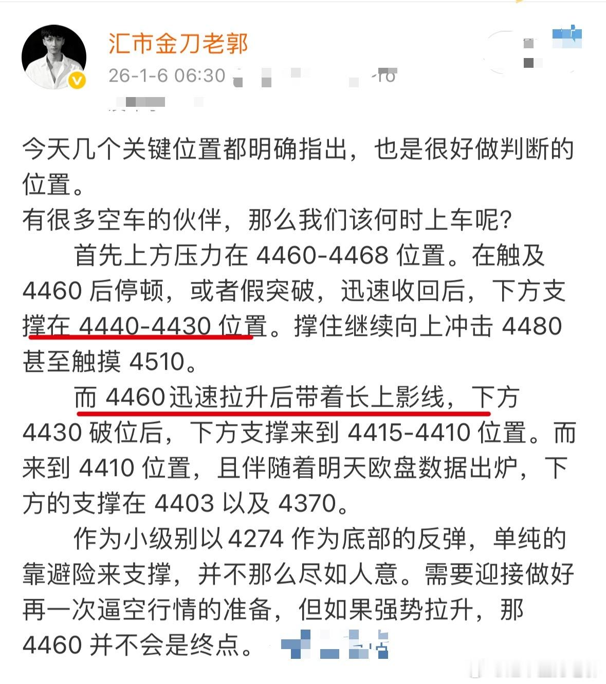 抵达,后续踩稳,不要轻易沽空了,按计划来,下个压力 4510。黄金