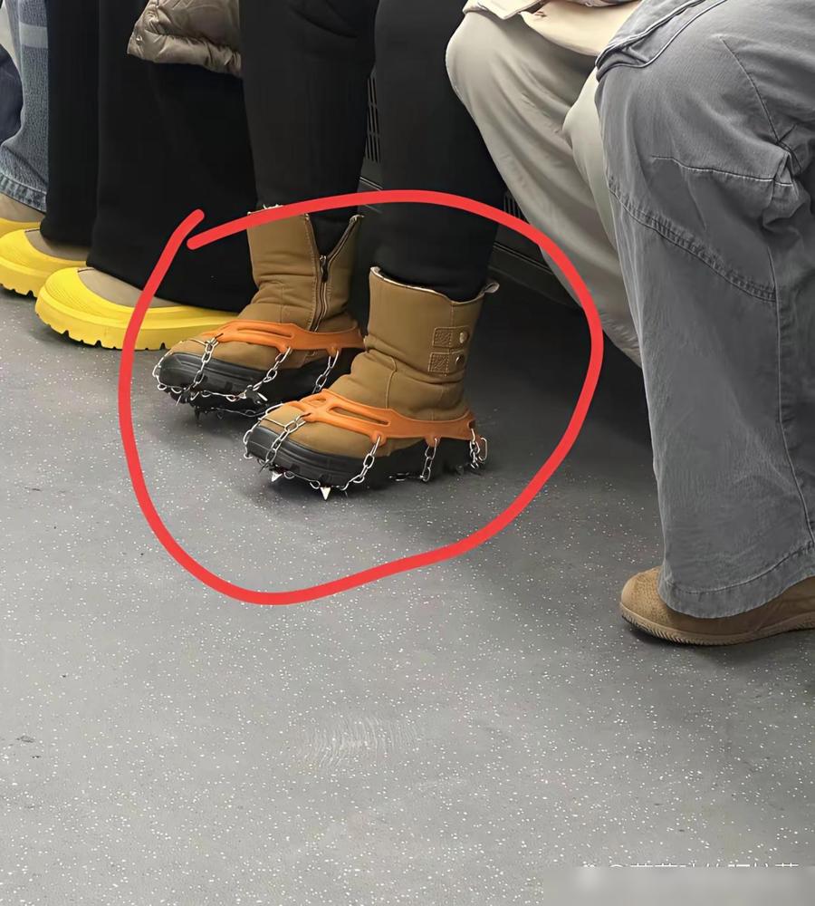 这是什么操作,不懂就问今天乘地铁,看到一男子,穿的厚厚的衣服,厚厚的裤子 ,脚上穿一双雪地棉鞋 ,这都无可厚非,天气冷这样的穿着都很正常,只是我不懂的是,他脚上的雪地棉犯了什么错 ,居然给它上了链条,链条下面似乎还有尖尖的像刀尖一样东西,第一次见这样的鞋,有懂的友友吗,这是什么情况? 这位大哥应该是刚从冰雪覆盖的户外环境钻进车厢,脚下这套威风凛凛的“金属装甲”确实让周围乘客都看呆了。 我感觉这东西大概率是那种登山专用的防滑冰爪,专门用来对付冻雨或者积雪路面的。 只是在野外它是抓地神器,可一旦踩到地铁这种光滑的大理石或瓷砖地面上,金属碰地砖,感觉走起路来反而会像踩了旱冰鞋一样容易打滑。 最让我担心的是安全问题,那些链条下的尖锐金属头看着杀伤力就不小,万一早高峰人挤人被他蹭上一脚,旁边的人估计当场就要疼出痛苦面具。 说实话我挺纳闷的,这玩意儿带着一圈金属尖刺,在进站过安检的时候,工作人员居然没把它列为安全隐患吗? 大概这就是所谓的“硬核过冬”吧,虽然大哥自己是站稳了,但周围的人看着这满地的“小刀尖”,恐怕都得自觉保持一米以上的社交距离。 感觉这种户外装备在进室内之后,最好还是顺手拆掉,不仅是为了保护公共地砖,也是为了不给路人制造心理压力。 有户外经验的友友可以科普下,穿着这玩意儿走平路,脚底板真的不会觉得硌得慌吗?
