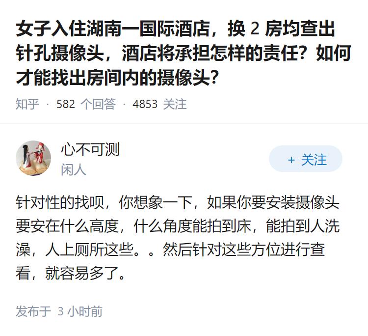 女子入住湖南一国际酒店,换 2 房均查出针孔摄像头,酒店将承担怎样的责任?如何才能找出房间内的摄像头?
