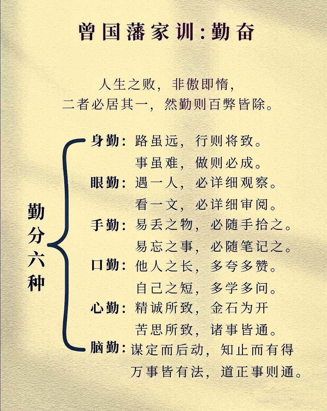 曾国藩的职场生存指南,适用于每个打工人。[作揖][作揖] 职场中,总有人抱怨怀才不遇,总有人觉得努力白费。 不妨看看曾国藩:他出身农家,无背景无资源,却靠“五勤法”(身勤、眼勤、手勤、口勤、心勤)在官场站稳脚跟; 他手握重兵,功高震主,却靠“慎独”和“自概之道”全身而退。 他的团队哲学至今适用:选人,“乡气”胜过官气,质朴比圆滑更可贵; 做事,“大局之外便是小节”,战略先于细节; 逆境,“悔字诀”,真正的强者善于自我修正; 成功,“花未全开月未圆”,巅峰处的克制智慧。 职场如战场,曾国藩的生存智慧,值得每个打工人学习。曾国藩 曾国藩人生智慧 [赞][赞]