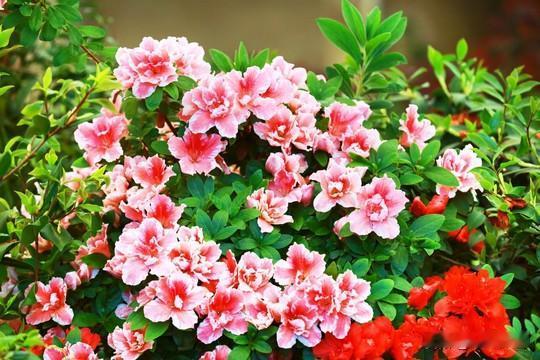 杜鹃花不愧有“花中西施”的美誉,一直以来都备受文人雅士喜爱。今天必须给大家分享杜鹃花界的“劳斯莱斯”——桃梅锦。 它植株低矮小巧,株高30 - 40厘米,分枝性好,株型紧凑圆润。颜值超高,开重瓣大花,花瓣圆润有层次,花型和玫瑰、月季相似,甚至能和微月“海神王阳台”以假乱真。花色是粉色或杏粉色,花瓣还有不规则红条纹或斑块。 除了真花,还有毛线钩织的杜鹃花盆景,做工精巧,花团锦簇,能为生活空间添一抹自然绿意。